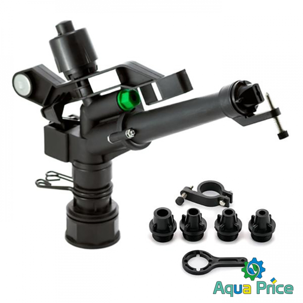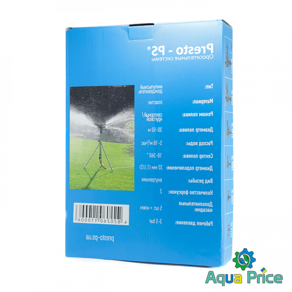 Дождеватель импульсный на 2 форсунки Presto-PS (6011) используется для орошения участков большой площади, для полива одного гектара земли их достаточно установить 4-6 штук в зависимости от формы участка. Оптимально подойдут для газонов или футбольных полей. В отличии от других видов эти дождеватели подают воду короткими импульсами с небольшим временным интервалом, встроенный маятниковый механизм разбивает струю на части и создает эффект близкий к естественному дождю. Данная модель универсальна в использовании на участках разной формы благодаря возможности регулировки сектора полива от 10 до 360°, максимально покрывает участок круглой формы до 50 метров в диаметре, площадь орошения 1960 м^2. Расход воды при давлении 5 атмосфер до 18 м^3/час. Возможно подключение как к гибкому садовому шлангу с установкой на переносную треногу, так и стационарная установка на магистральную трубу с помощью фитингов с наружной резьбой 40 мм (1,1/2"). Рекомендуемое рабочее давление в системе от 3 до 5 атмосфер. Модель комплектуется четырьмя дополнительными форсунками для формирования струи различного диаметра, пятая насадка используется для получения плоской формы струи. Изготовлен дождеватель из высококачественного, стойкого к воздействию ультрафиолетового излучения и удобрений пластика. При производстве используются только первичные материалы.