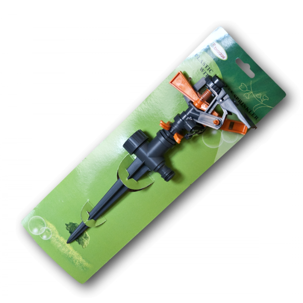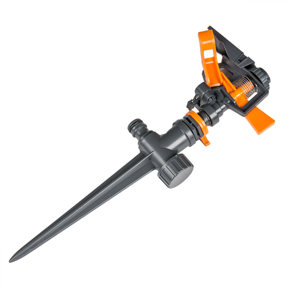 Ороситель пульсирующий на колышке. Изготовлен из высококачественного пластика, оснащен адаптером под коннектор. Регулировка угла поворота и наклона струи с фиксацией выбранного сектора.