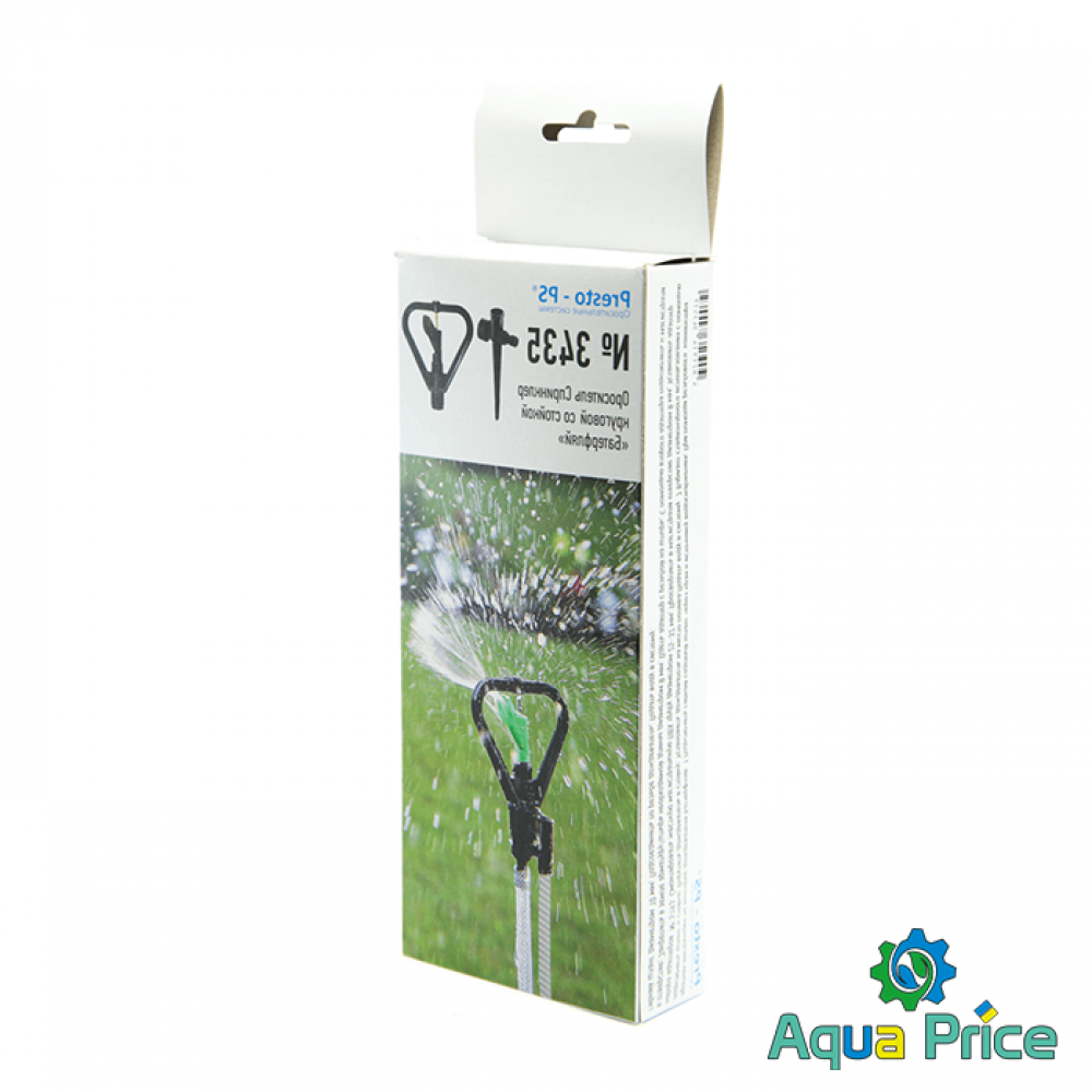 Дождеватель круговой Presto-PS Баттерфляй (3435) используется для орошения газонов средней и небольшой площади, подойдет так же и для полива огорода. Эти дождеватели разбрызгивают воду тонкими струями, имитируя естественный мелкий дождь, и обрабатывают сектор участка захватом 360° при диаметре покрытия до 10 метров. Максимальная площадь полива составляет 79 м^2.Возможно подключение как к гибкому садовому шлангу с установкой на ножку или переносную треногу, так и стационарная установка на магистральную трубу с помощью фитингов с внутренней резьбой 12 мм (1/2"). Рекомендуемое рабочее давление в системе от 2 до 5 атмосфер. Расход воды при давлении 2 атмосферы до 0,5 м^3/час. Изготовлен дождеватель из качественного ПВХ и латуни, долговечный, стойкий к воздействию ультрафиолета и водорастворимых удобрений.
