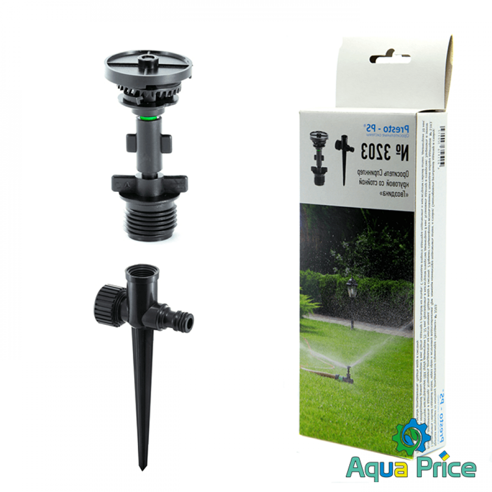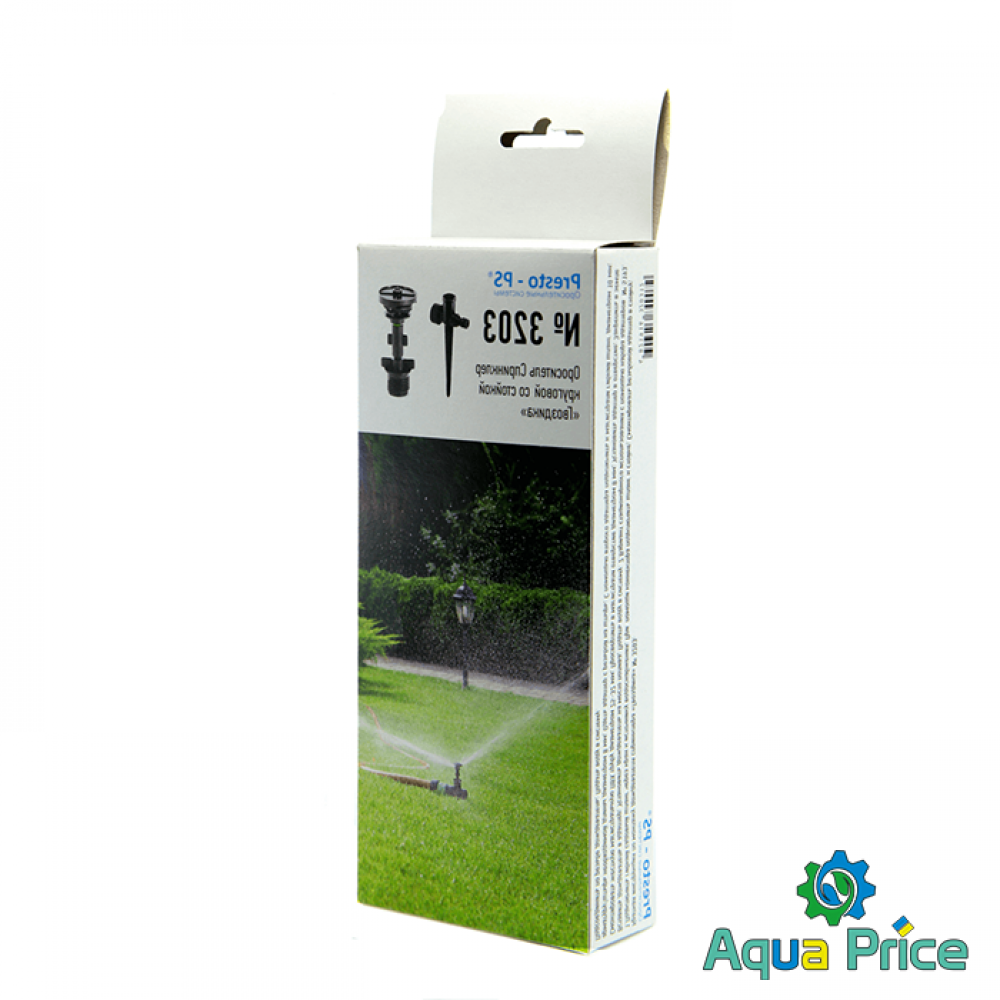 Дождеватель круговой Presto-PS Гвоздика (SP-3203) используется для орошения газонов средней и небольшой площади, подойдет так же и для полива огорода или теплицы. Эти дождеватели разбрызгивают воду тонкими струями, имитируя естественный мелкий дождь, и обрабатывают сектор участка захватом 360° при диаметре покрытия до 12 метров. Максимальная площадь полива составляет 113 м^2 Возможно подключение как к гибкому садовому шлангу с установкой на комплектной ножке или переносной треноге, так и стационарная установка на магистральную трубу с помощью фитингов с внутренней резьбой 12 мм (1/2"). Рекомендуемое рабочее давление в системе от 2 до 5 атмосфер. Расход воды при давлении 2 атмосферы до 0,3 м^3/час. Изготовлен дождеватель из качественного ПВХ, долговечный, стойкий к воздействию ультрафиолета и водорастворимых удобрений. Для увеличения срока эксплуатации изделия рекомендуется установка фильтра на подающую магистральную трубу.