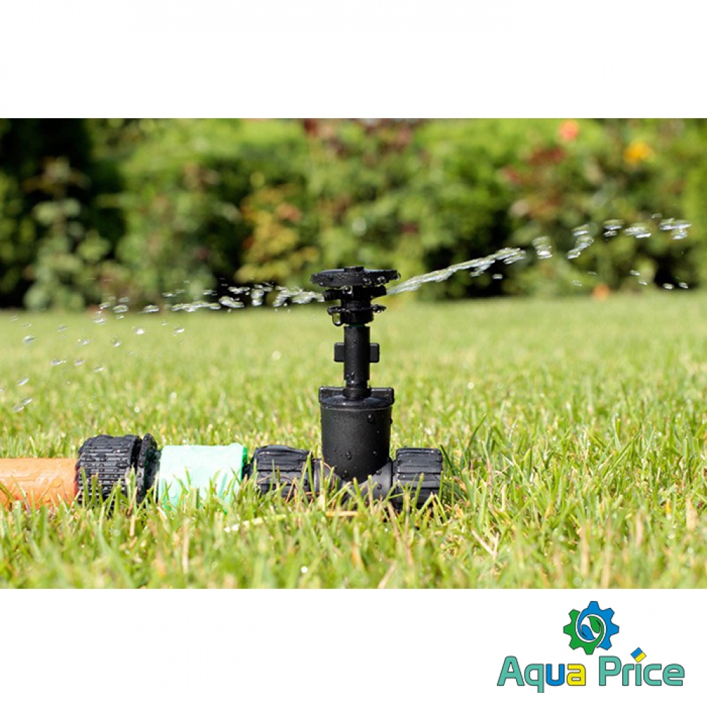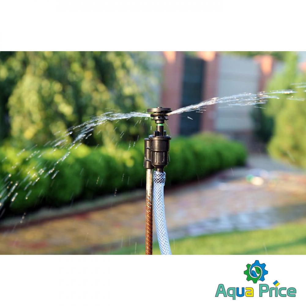 - С помощью адаптера соединить трубу и дождеватель;