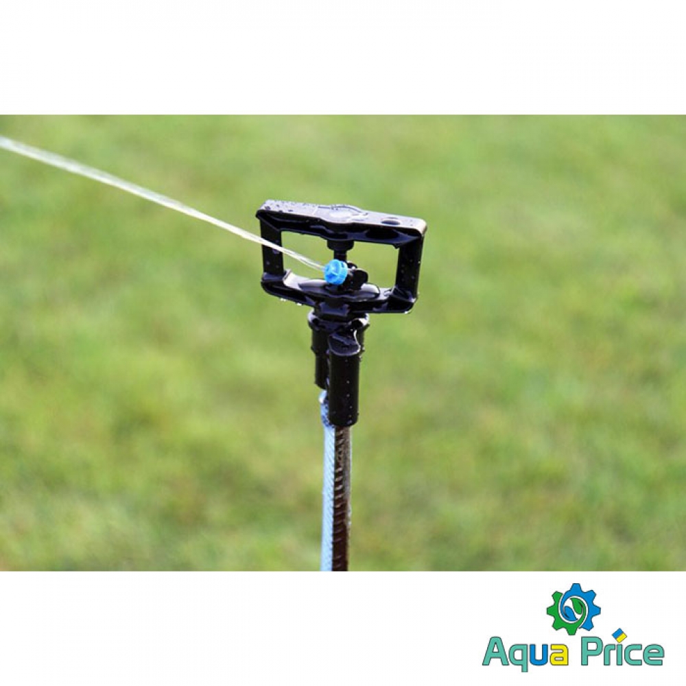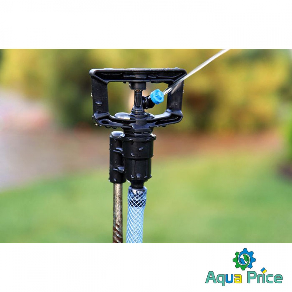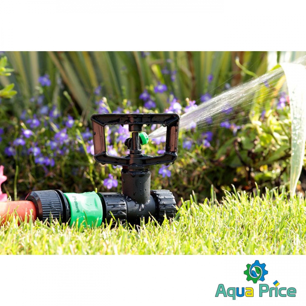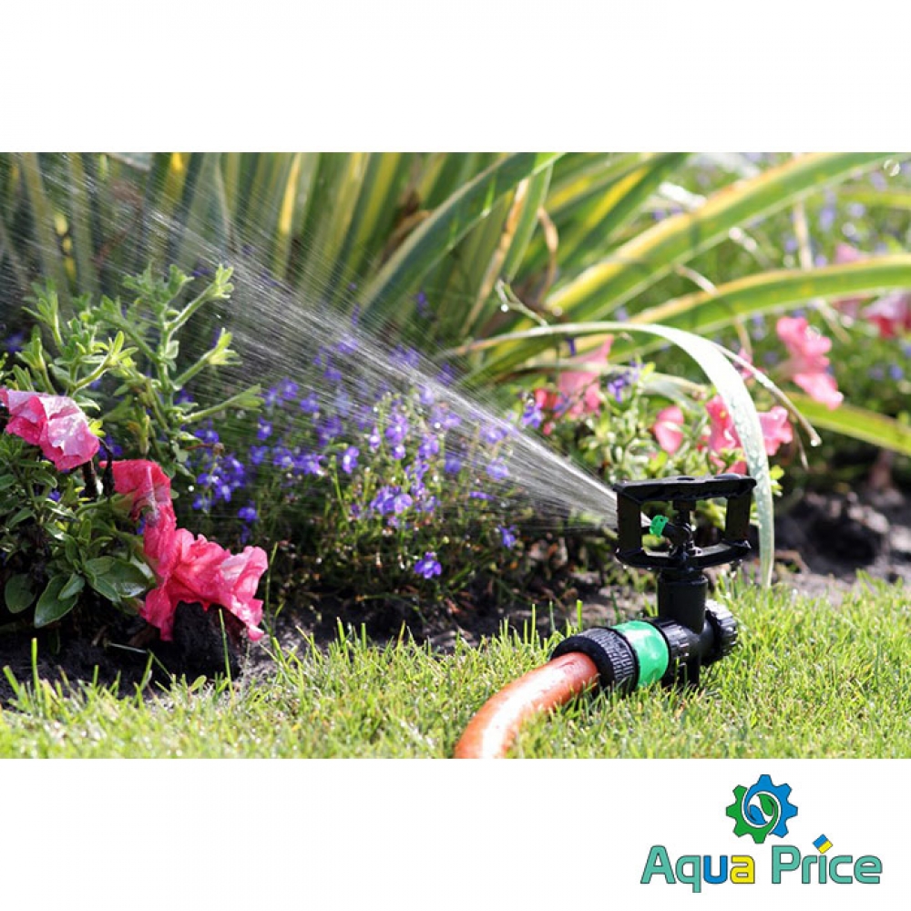 Дождеватель круговой Presto-PS регулируемый Римский фрегат (SP-3103) используется для орошения газонов средней и небольшой площади, подойдет так же и для полива огорода или теплицы. Эти дождеватели разбрызгивают воду тонкими струями, имитируя естественный мелкий дождь, и обрабатывают сектор участка захватом 360° при диаметре покрытия до 12 метров. Максимальная площадь полива составляет 113 м^2. Особенностью данной модели является форсунка с регулировкой по высоте подачи струи от -8o до 25o. Форсунка дождевателя съемная. что позволяет быстро и просто прочистить её при необходимости. А наличие тормозной системы оси из силикона даёт возможность дождевателю поддерживать режим медленного вращения в 1 оборот за 45 секунд для обеспечения более равномерного орошения. Возможно подключение как к гибкому садовому шлангу с установкой на комплектной ножке или переносной треноге, так и стационарная установка на магистральную трубу с помощью фитингов с внутренней резьбой 12 мм (1/2"). Рекомендуемое рабочее давление в системе от 1,5 до 3 атмосфер. Расход воды при давлении 2 атмосферы до 0,2 м^3/час. Изготовлен дождеватель из качественного ПВХ, долговечный, стойкий к воздействию ультрафиолета и водорастворимых удобрений. Для увеличения срока эксплуатации изделия рекомендуется установка фильтра на подающую магистральную трубу.