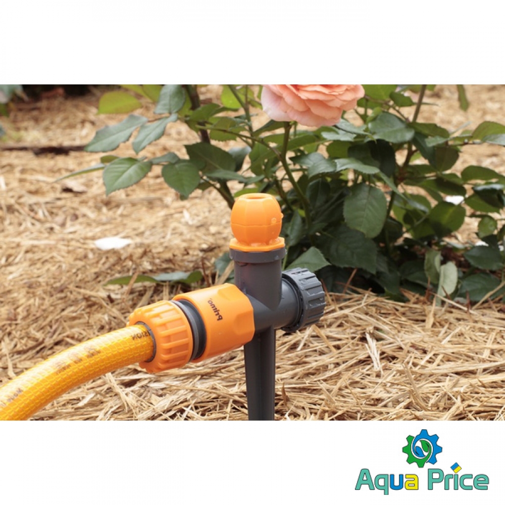 - При помощи коннектора подключить шланг к дождевателю;