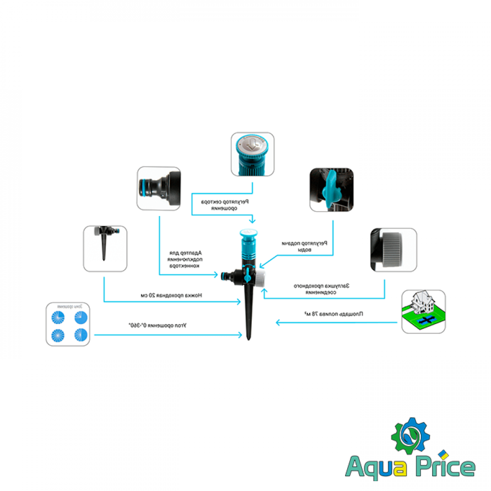 - Быстрая регулировка сектора и направления полива;