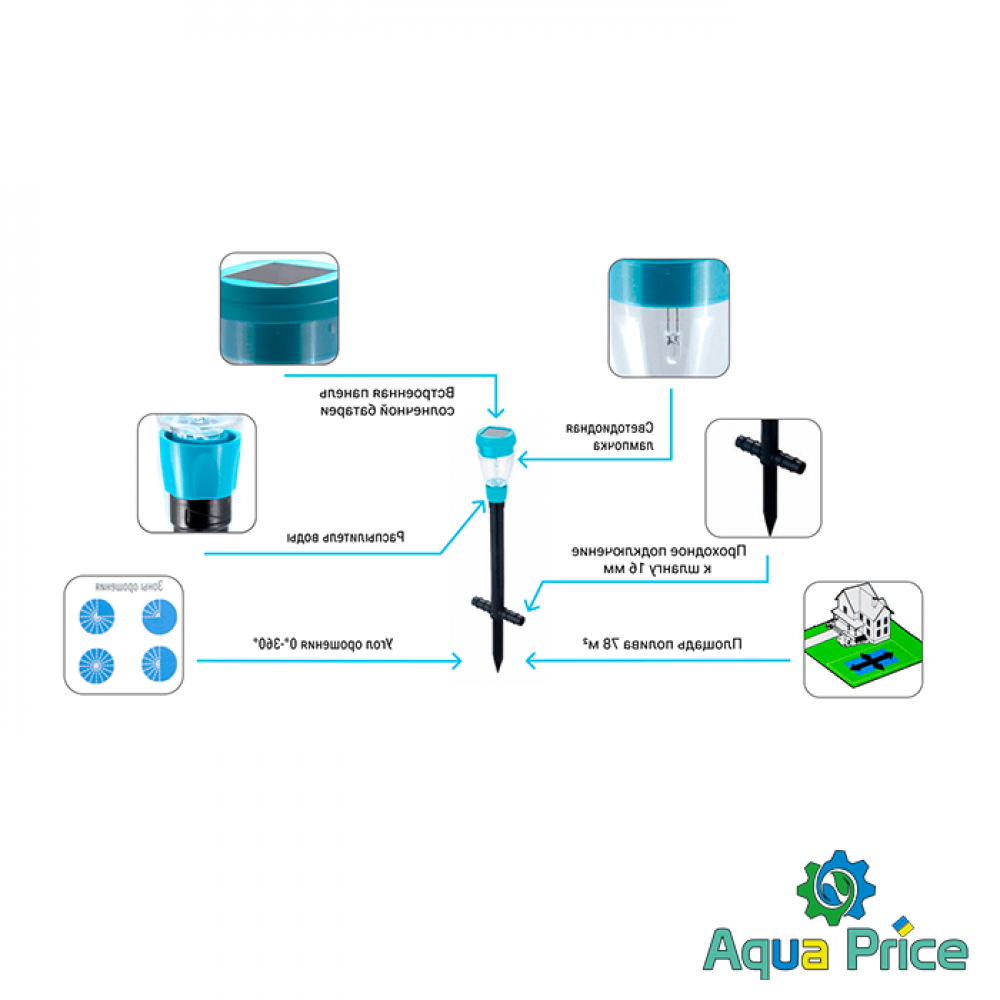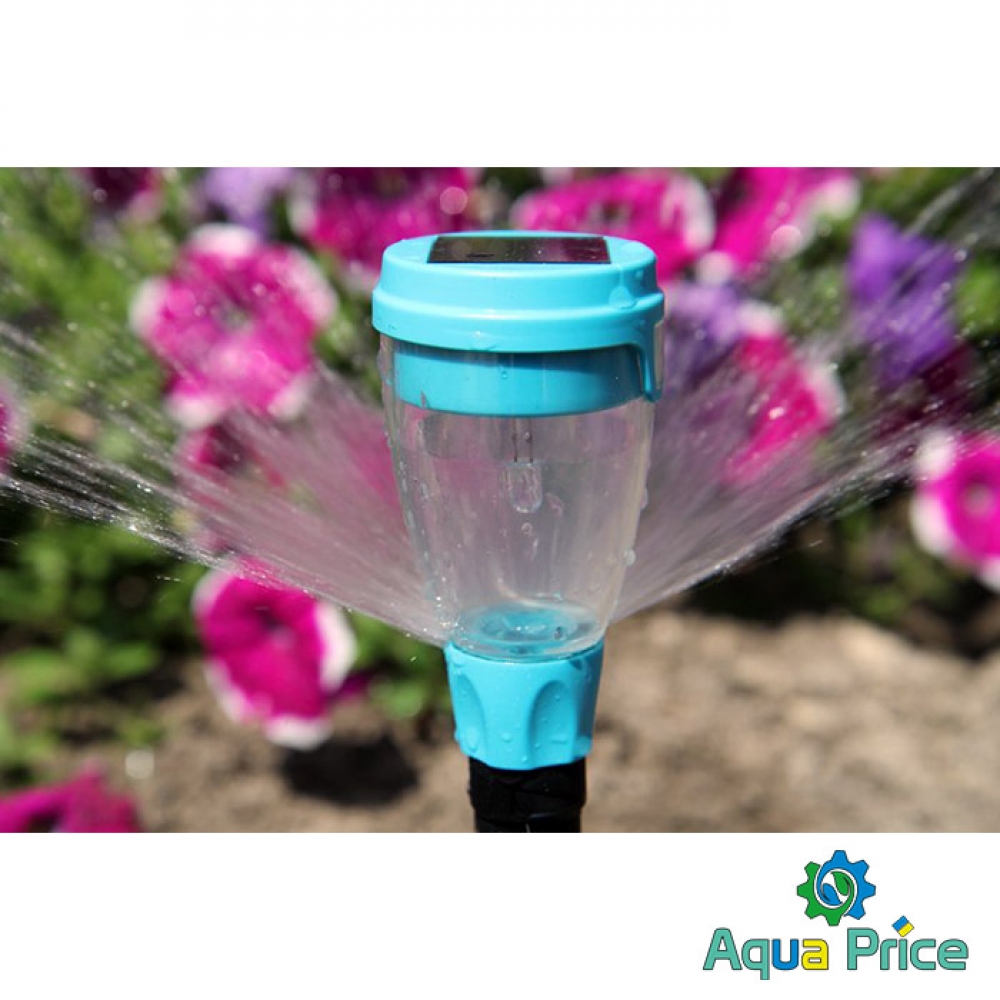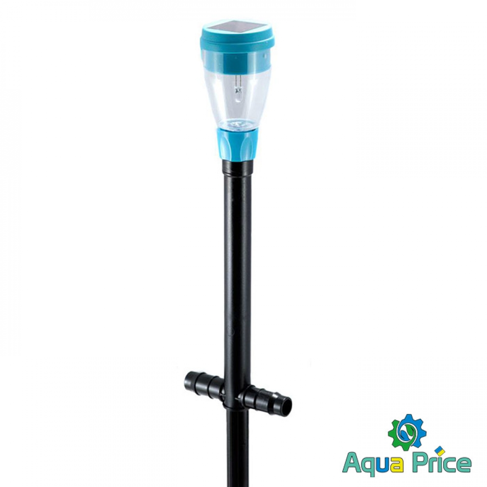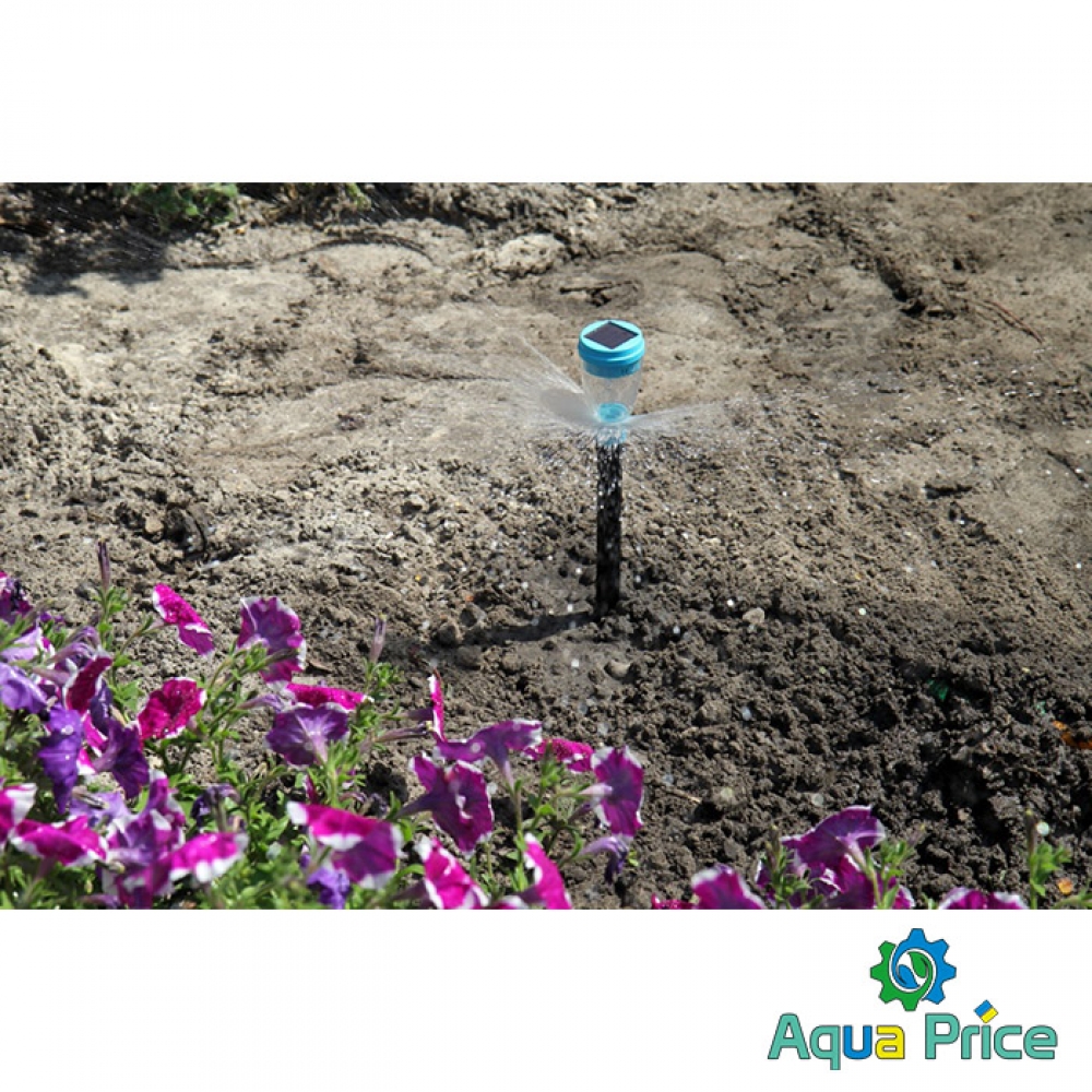Дождеватель секторный с подсветкой Presto-PS Фонарик (7734) используется для орошения газонов средней и небольшой площади, подойдет так же и для полива огорода. Эти дождеватели разбрызгивают воду плоской струей имитируя естественный дождь. Сектор полива легко регулируется поворотом форсунки от 30 до 360 градусов, что позволяет быстро настроить ороситель под полив участка различной формы и размера. Дополнительно дождеватель оснащен солнечной батареей, аккумулятором и светодиодом. Благодаря этому он накапливает энергию днем и автоматически включает подсветку в темное время суток. Максимальный диаметр захвата до 8 метров с площадью полива 50 м^2. Расход воды при давлении 2 атмосферы до 0,9 м^3/час. Используется ороситель с садовыми шлангами диаметром 5/8 дюйма. Рекомендуемое рабочее давление в системе от 2 до 4 атмосфер. Минимальное давление необходимое для работы оросителя составляет 0,5 атмосфер. При расчете количества дождевателей, необходимых на Вашу площадь полива, нужно учитывать наличие "мертвой зоны" под самим дождевателем диаметром 1,5 метра и соответственно подбирать расстояние между ними. Для продления срока службы дождевателя рекомендуется использование в системе подачи воды фильтра грубой очистки.