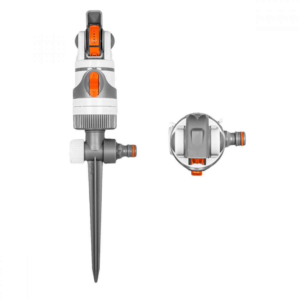 Длина струи регулируется наклоном головки оросителя. Возможен секторный или круговой полив, удобный переключатель для быстрого перехода от одного типа полива к другому. Оснащен стандартным соединением для подключения шланга посредством коннектора, закрытая наружная резьба позволяет с помощью адаптера включить ороситель WL-Z01 в последовательную систему полива.