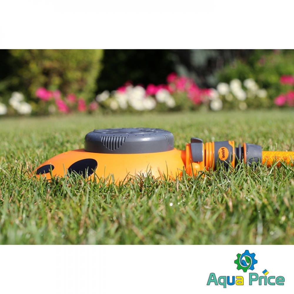 Дождеватель многофункциональный Presto-PS Божья коровка (8112) используется для орошения газонов средней и небольшой площади, подойдет так же для полива огорода и придомовой территории. Эти дождеватели универсальны и хорошо подойдут для участков со сложной геометрией и смешанной растительностью. Поворотная головка дождевателя с разными видами форсунок позволяет выбрать форму орошаемого сектора и вид распыления из 8 типов. Возможные режимы полива: круговой / секторный / квадратный / прямоугольный / туман / четверть круга / треугольный / плоский. Дополнительно оснащен регулятором подачи воды на входе для изменения интенсивности полива. Подключается к садовым шлангам диаметром 1/2, 5/8 и 3/4 дюйма при помощи стандартных коннекторов. Минимальный диаметр полива 2 метра, максимальный 8 метров. Площадь полива составляет до 50 м^2. Рекомендуемое рабочее давление в системе от 2 до 4 атмосфер. Расход воды при давлении 2 атмосферы до 0,8 м^3/час. Изготовлен дождеватель из качественного пластика, долговечный, стойкий к воздействию ультрафиолета и водорастворимых удобрений.
