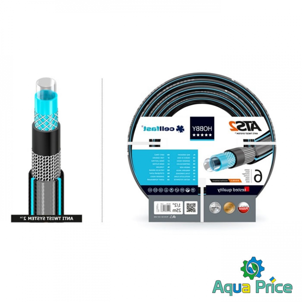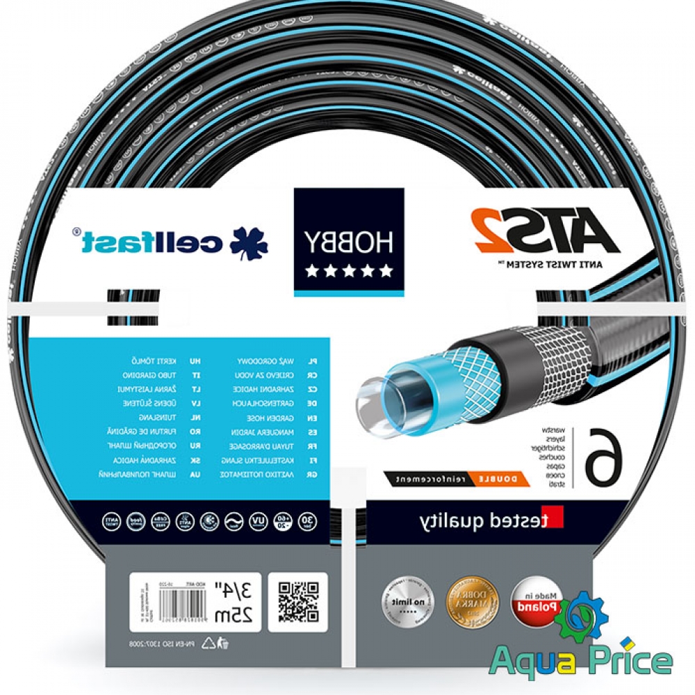 Шестислойные армированные садовые шланги серии Hobby изготовленные на заводе Cellfast в Польше обладают превосходными эксплуатационными качествами. Они прочные, эластичные, стойкие к физическому износу, применяются в широком диапазоне температур окружающей среды от + 60 до - 20°C. Внутренний слой выполнен без добавления вредных для растений и здоровья человека примесей, что позволяет использование этих шлангов для подачи питьевой воды и пищевых жидкостей. Запатентованная фирменная система двойной крестово-трикотановой оплетки из прочного полиэстерного волокна «Anti Twist System 2» защищает эти шланги от скручивания и блокирования подачи воды. Они обладают высокой прочностью и способны длительно работать при давлении до 16 атмосфер. Использование материалов высокого качества соответствующих всем современным европейским нормам, высокотехнологичного процесса изготовления и постоянного контроля качества делает возможным использование шлангов Cellfast Hobby до 12 лет без ухудшения их начальных механических свойств.
