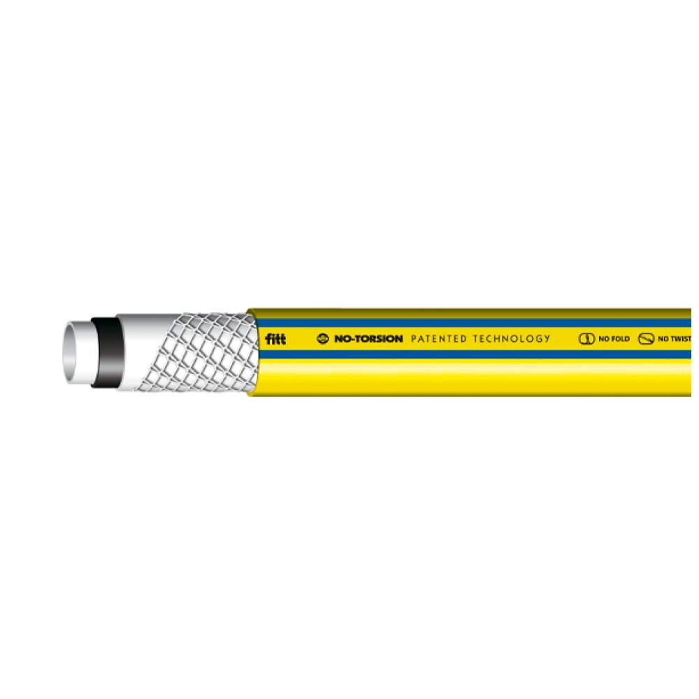 Шланг поливочный пятислойный. Армирован прочной полиэстеровой оплеткой инновационной системы NTS® (Non-Torsion System), которая предотвращает перекручивание и заламывание шланга. Шланг изготовлен из высококачественного эластичного ПВХ. Устойчив к негативному воздействию UV излучения и интенсивному нарастанию водорослей внутри шланга (дополнительный черный слой).