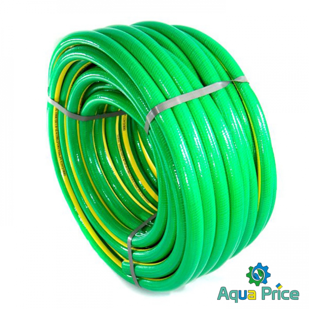 Шланг поливочный Evci Plastik Флория (FL 1D 50) диаметром 25 мм (1") длиной 50 метров изготовлен из качественного первичного ПВХ, благодаря этому он устойчив к воздействию воды, разрушающему воздействию прямых солнечных лучей, применяется для внесения в почву различных видов водорастворимых удобрений. Прозрачный наружный слой выполняет роль защиты шланга от механических повреждений и стирания. Сетчатая оплетка из прочной синтетической нити, составляющая промежуточный слой, делает шланг устойчивым к растяжению и разрывам при рабочем давлении до 5 атмосфер. Третий желтый слой дополнительно увеличивает общую толщину шланга и его способность сохранять форму во время эксплуатации и хранения. Внутренний слой с гладкой стенкой не создает препятствий потоку жидкости внутри шланга и не содержит в своем составе примесей свинца, бария и кадмия.