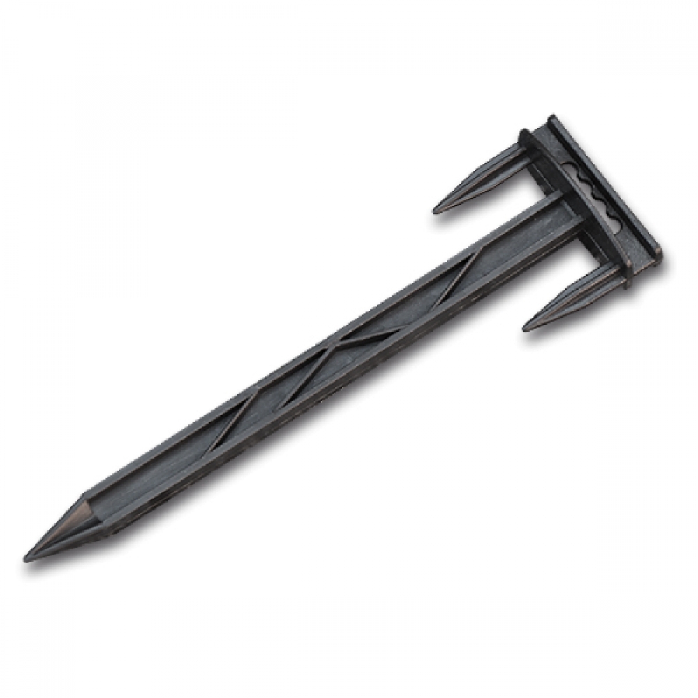 Центральный стержень имеет дополнительные зацепы для более прочной фиксации в грунте. Два дополнительных фиксатора прочно прижимают агроволокно к почве.