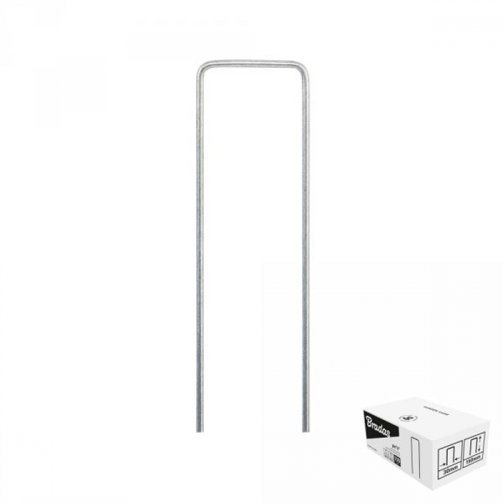 Шпилька оцинкованная, металлическая, в форме буквы "U". Ширина 3 см / высота 20 см. Применяется для фиксации укрывных материалов на грунте.