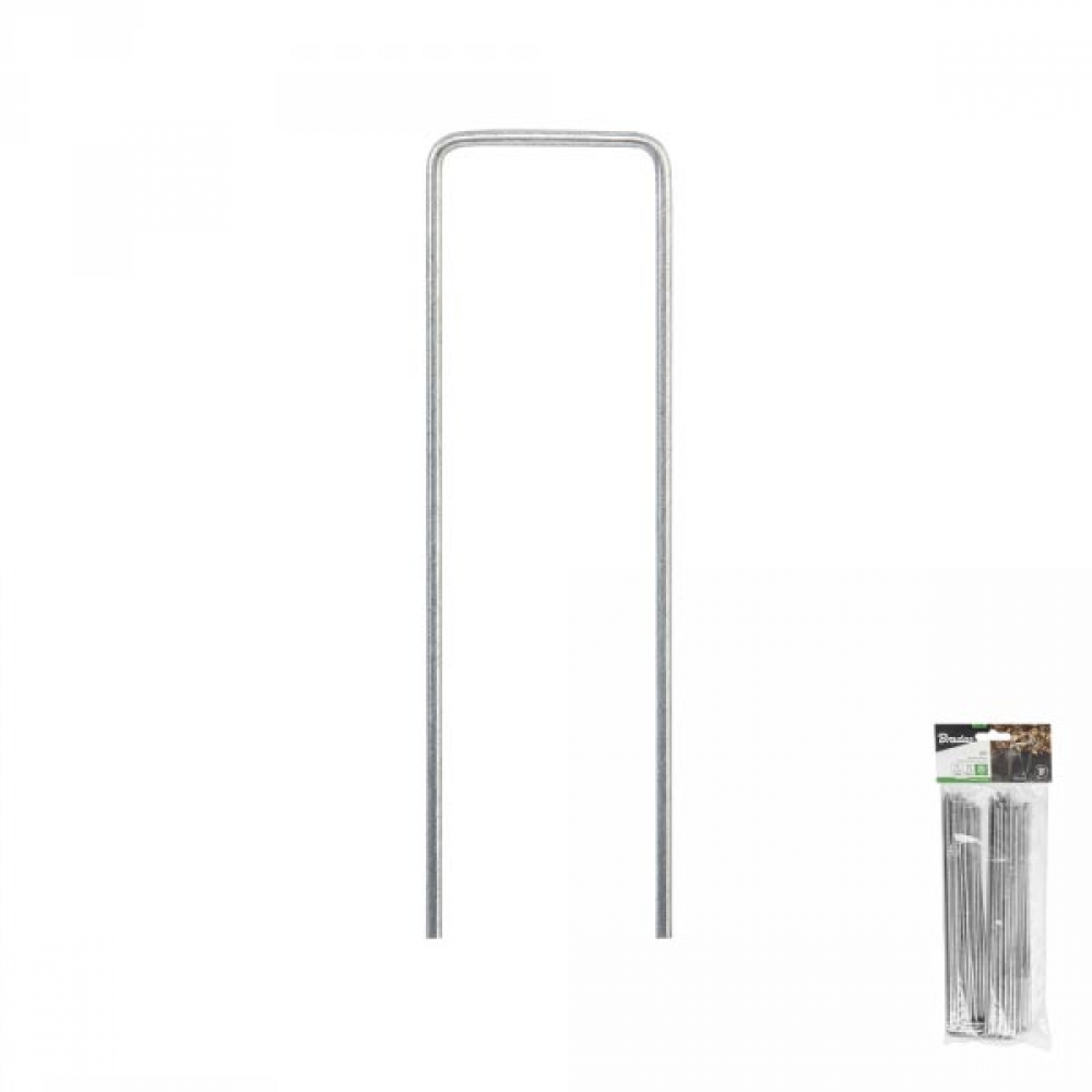 Шпилька оцинкованная, металлическая, в форме буквы "U". Ширина 3 см / высота 15 см. Применяется для фиксации укрывных материалов на грунте.