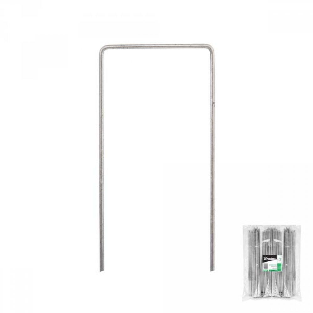 Шпилька оцинкованная, металлическая, в форме буквы "U". Ширина 7 см / высота 20 см. Применяется для фиксации укрывных материалов на грунте.