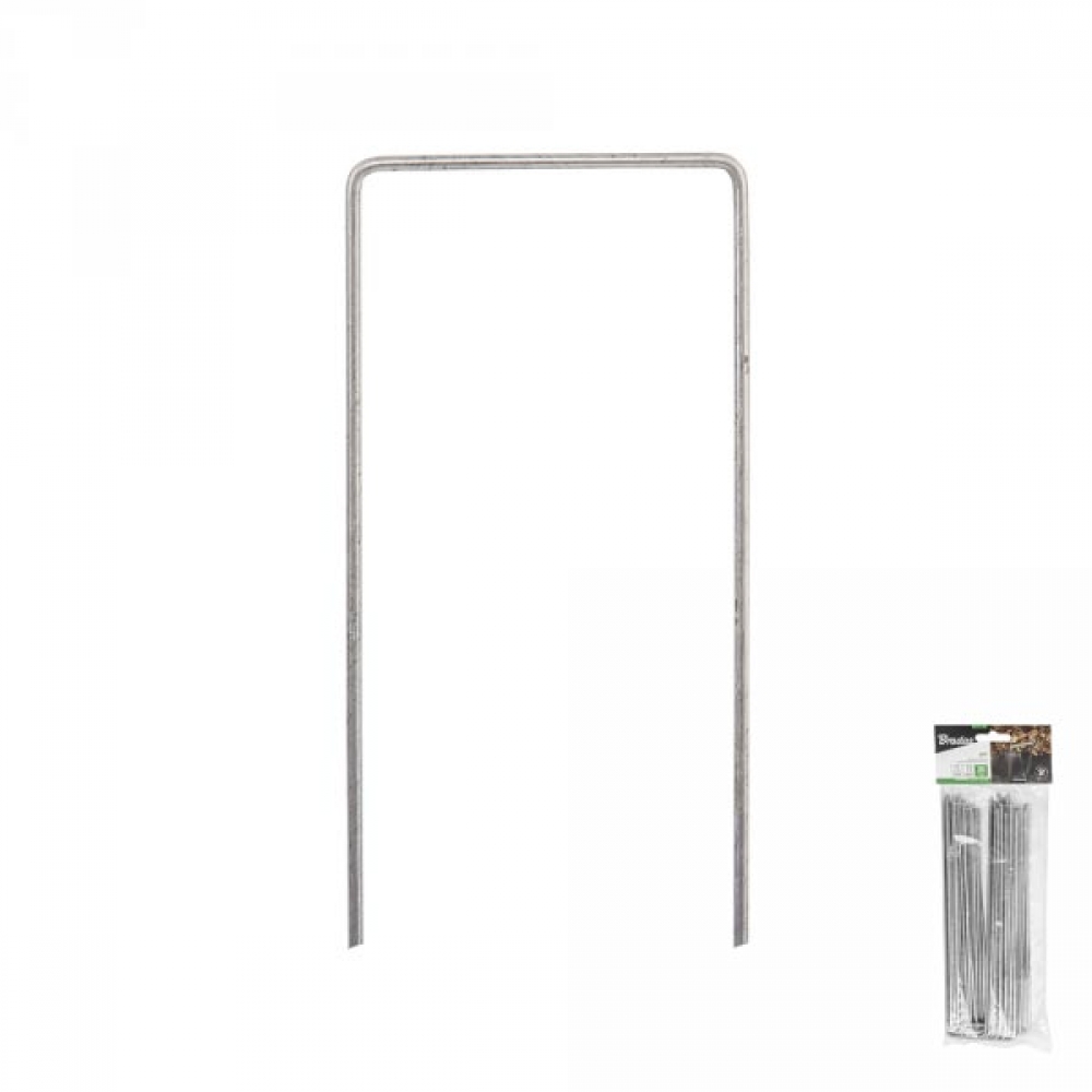Шпилька оцинкованная, металлическая, в форме буквы "U". Ширина 7 см / высота 20 см. Применяется для фиксации укрывных материалов на грунте.