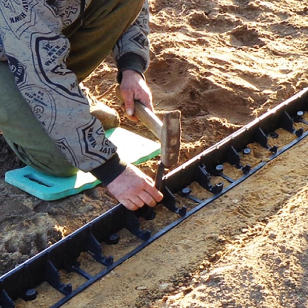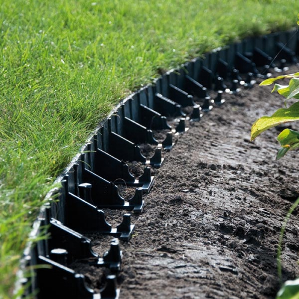 Универсальный садовый бордюр "RIM-BORD TYP ROUND" применяется для формирования и укрепления границ различных типов садовых покрытий: