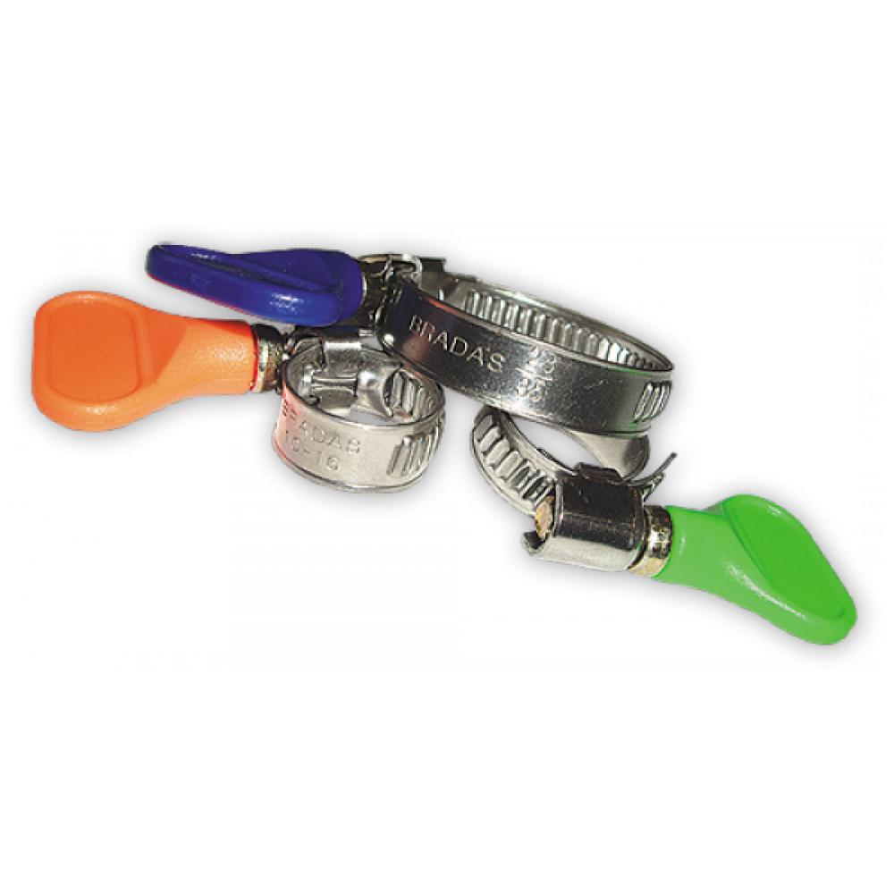 Хомут червячный с бабочкой (барашком) BRADAS GRIP – ленточный накатной хомут с шириной ленты 9 мм изготовлен из высококачественной нержавеющей стали. Основной особенностью данного вида хомутов является наличие специального пластикового ключа, который позволяет производить монтаж без применения отвертки. Но следует учитывать, что таким ключом существует вероятность чрезмерного сжатия крепления. Хомуты BRADAS GRIP применяются в местах, где необходимо их часто снимать или заменять.