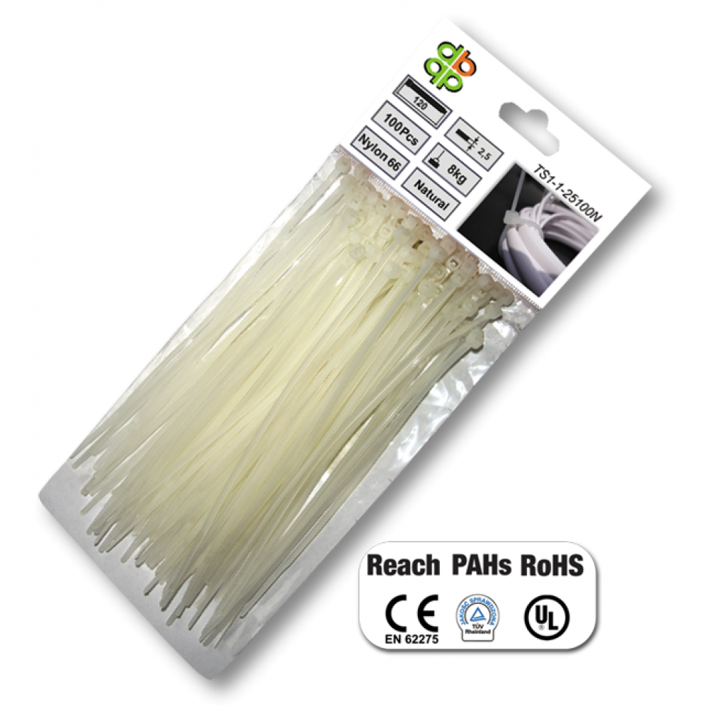 Стяжки кабельные пластиковые, многоразовые, белые, NEUTRAL, 4,8*160 мм, TS1248160N