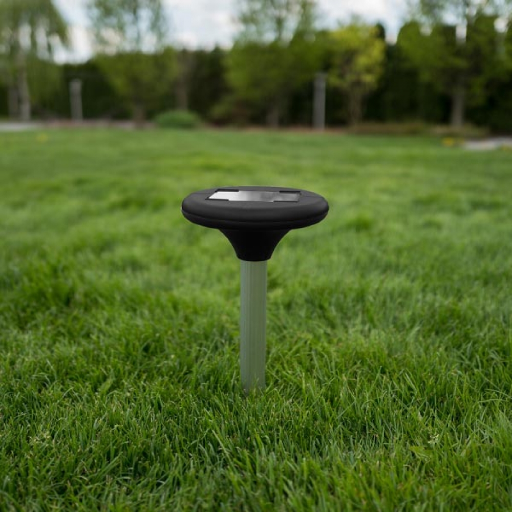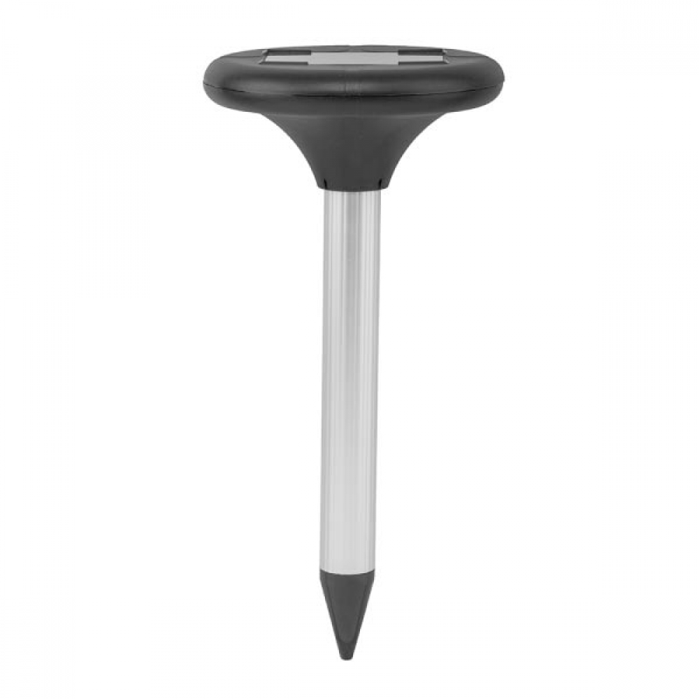 Высокоэффективный отпугиватель кротов, мышей и различных грызунов. Имеет встроенную солнечную батарею и аккумулятор. Эффективен для участков радиусом 15 м. Крепится на алюминиевом колышке.