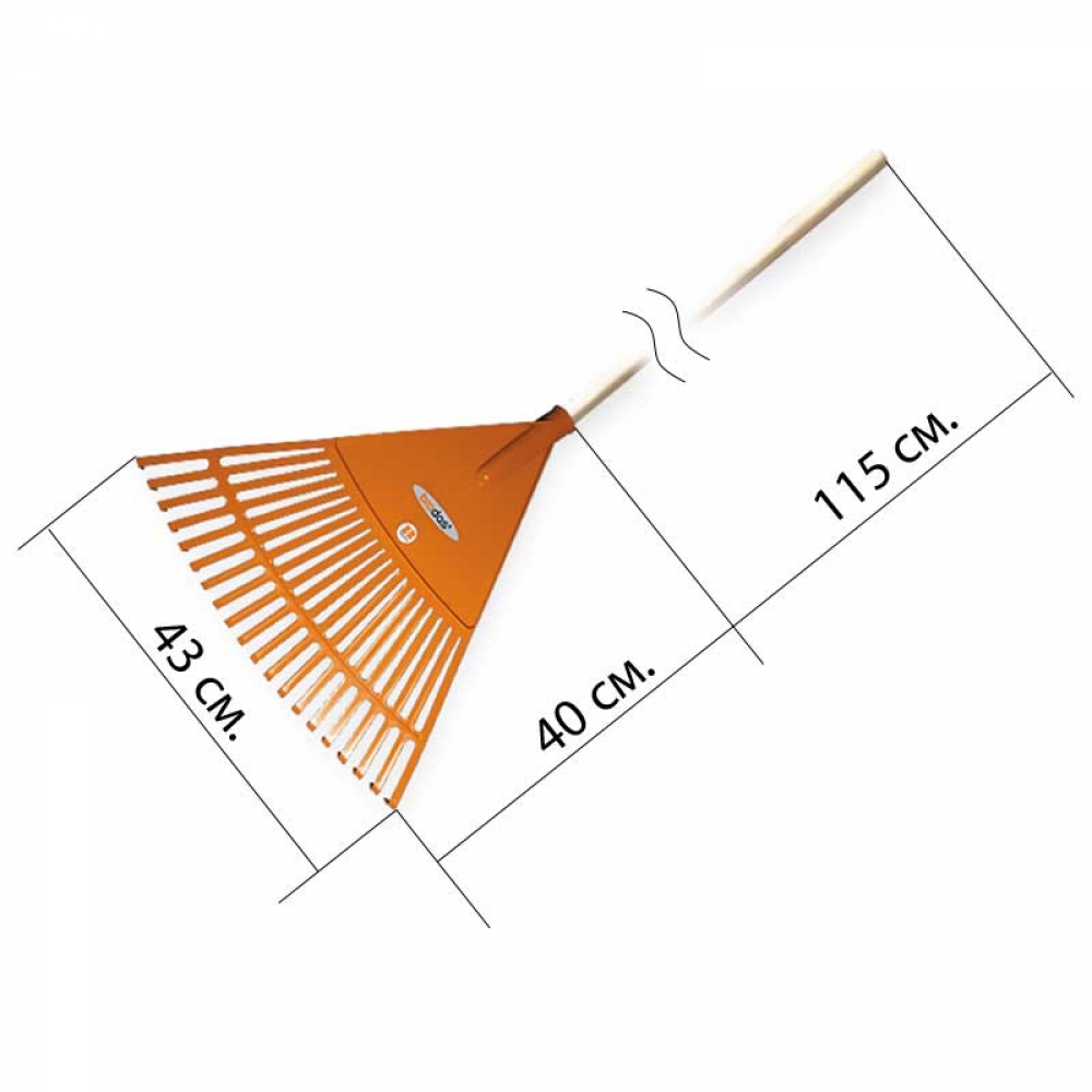 Веерные грабли изготовлены из высококачественного пластика. Грабли имеют внутреннюю резьбу для установки лакированного деревянного черенка. Предназначены для уборки опавшей листвы, скошенной травы и других садовых работ.