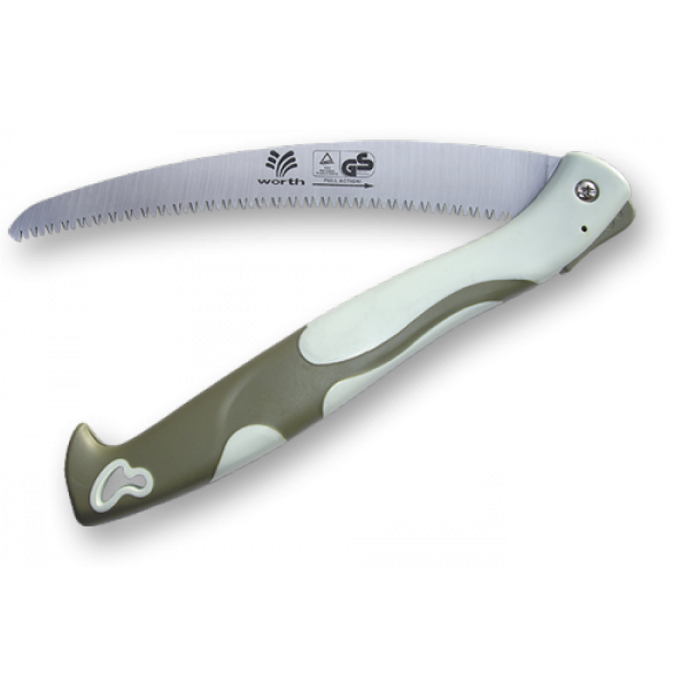 Лезвие складной пилы изготовлено из высококачественной закаленной стали. Специальные зубчики эффективно перепиливают толстые ветки и небольшие деревья.