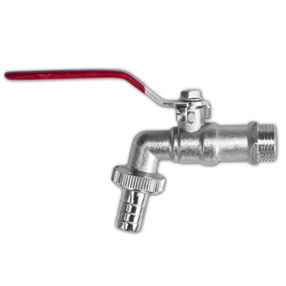 Имеет наружную резьбу 1/2" для подключения к водоснабжению, наружную резьбу на выходе 3/4", а также штуцер под шланг 1/2". .