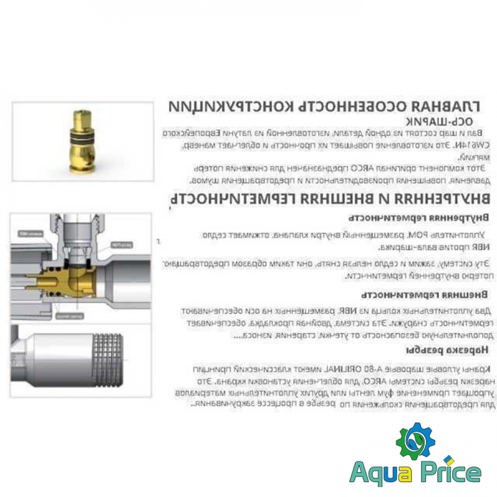 Для предотвращения внутренней герметичности используется уплотнитель РОМ и седло, которые нельзя снять. Нарезка резьбы классическая для Arco, универсальная, упрощает монтаж крана и использование трепанного льна, смоляной пряди или иного уплотнителя. При закручивании исключается скольжение.