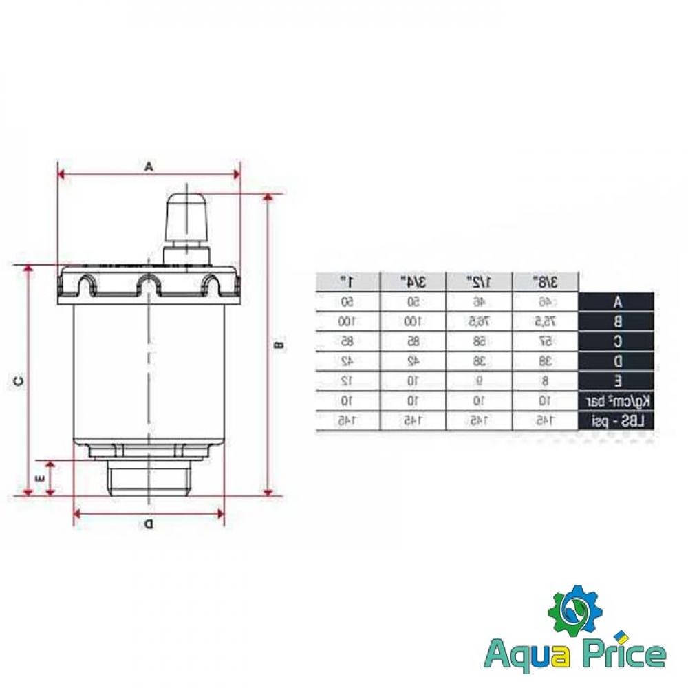 Технические характеристики воздухоотводчика: