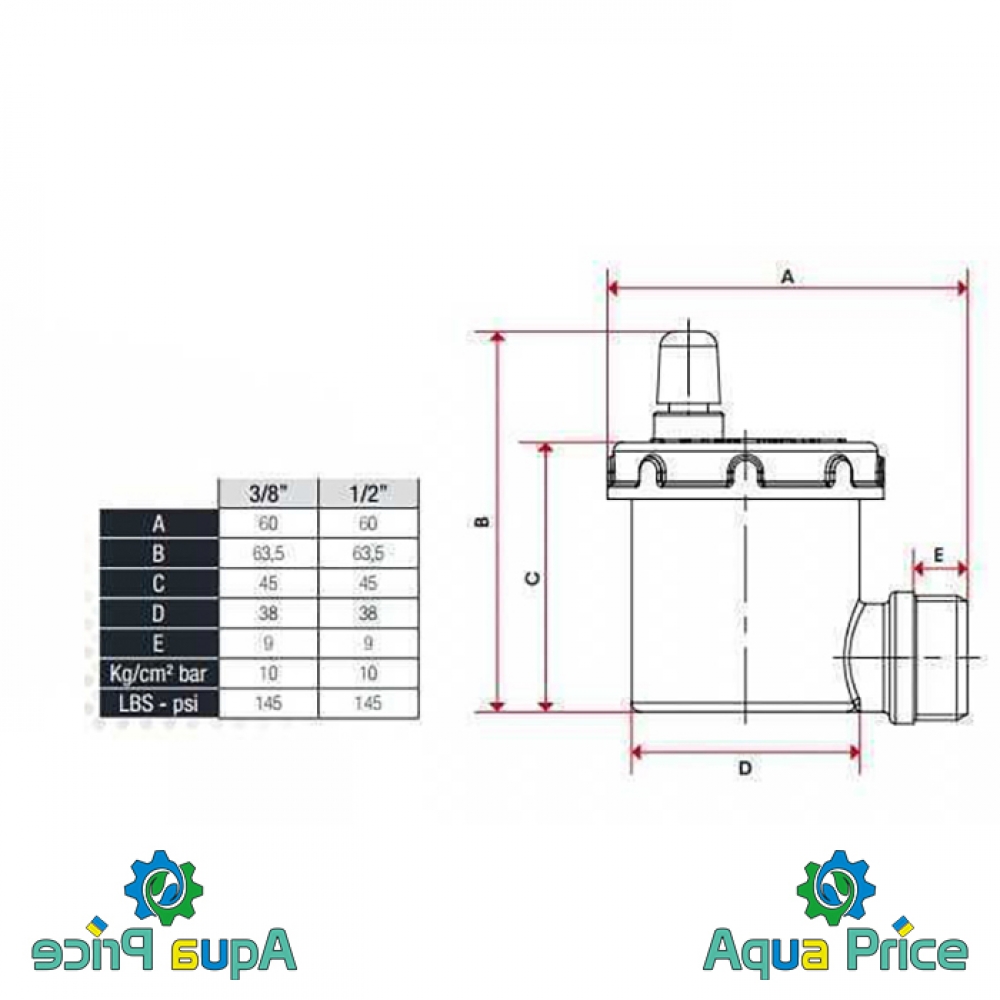 Технические характеристики воздухоотводчика:
