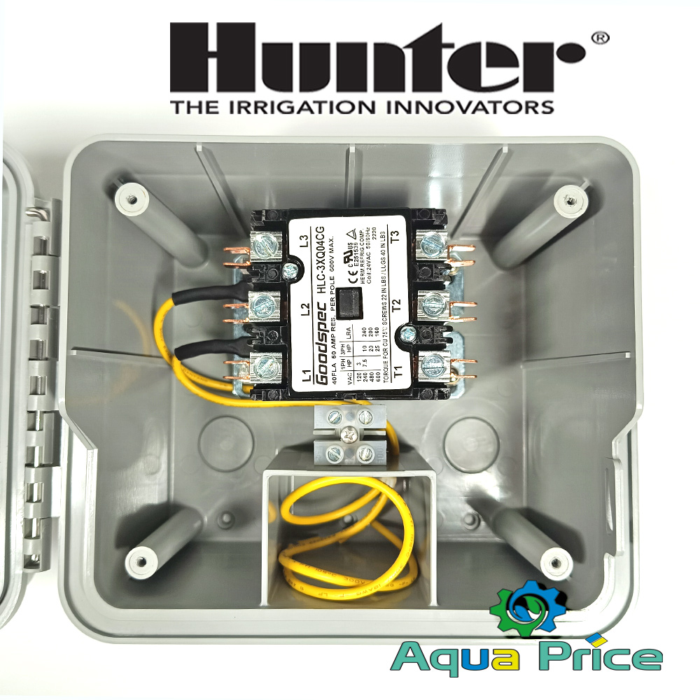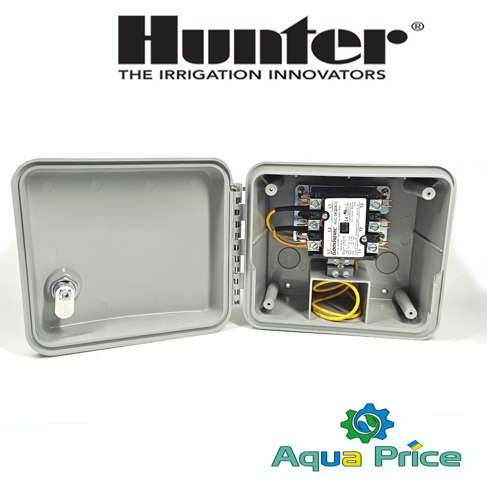 Трифазний магнітний пускач Hunter PSR-53 - це пристрій, який використовується для керування електричними моторами в трифазних електричних мережах 380в. Він перетворює низьковольтний (керуючий) сигнал від контролера на високовольтний сигнал, замикаючи контакти може запустити мотор насоса та розмикаючи відключає живлення. Цей пристрій важливий для забезпечення безпечної та ефективної роботи двигуна та живильних ланцюгів, для захисту обладнання від пошкоджень через перевантаження або коротке замикання.