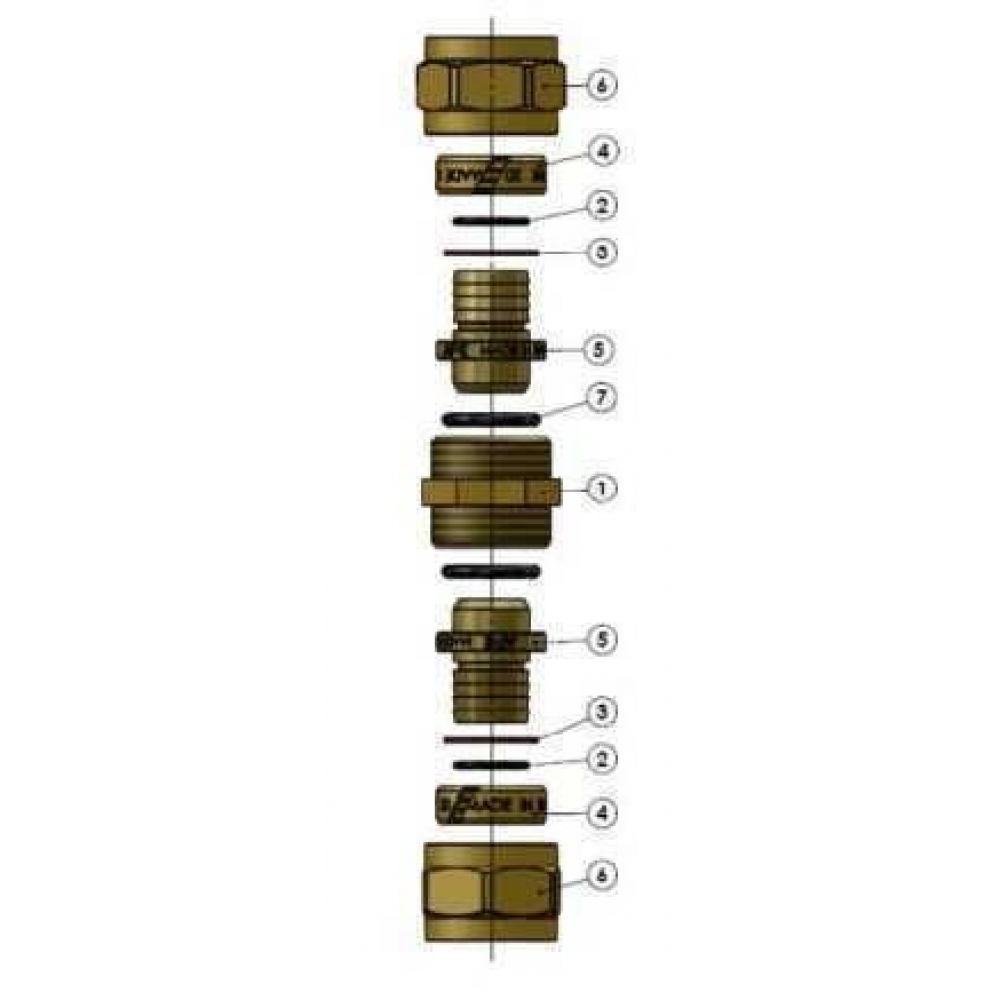 -Муфти серії 703 L були спроектовані та реалізовані для надання допомоги установнику, скорочуючи час на монтаж та збільшуючи характеристики стійкості у часі. Крім того, дана серія фітингів не вимагає особливих інструментів для монтажу. Стійкість кріплення між трубою і фітингом гарантується одночасною наявністю двох ущільнювальних кілець (2), розташованих в ялинці (6) та особливою, протиковзною формою самої ялинки (у вигляді зубів пили). Кріплення труби відбувається за рахунок особливого виду пресування, що складається з радіального пресування, отриманого за рахунок загвинчування гайки (7 ) яка визначає стиск розрізаної оживальної частини ( 5) навколо труби та осьового пресування, яке стискає кільце ущільнювача (4) на корпусі. Подібна система пресування гарантує стійкість отриманого з'єднання будь-яких умов роботи. Крім того, працюючи на латуні в пресуванні, виключаються ризики виникнення мікротріщин. Наявність шайби (3) із PTFE ізолює алюміній труби від латуні фітинга для уникнення виникнення корозійних ефектів
