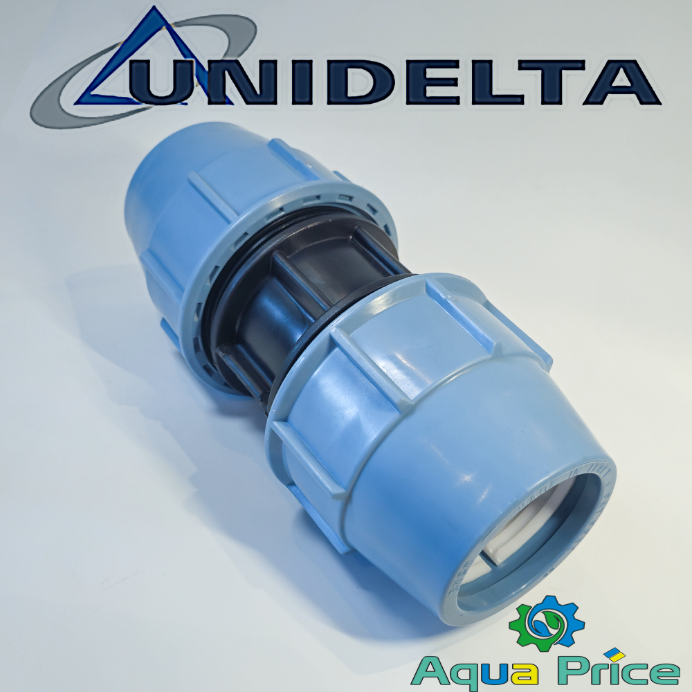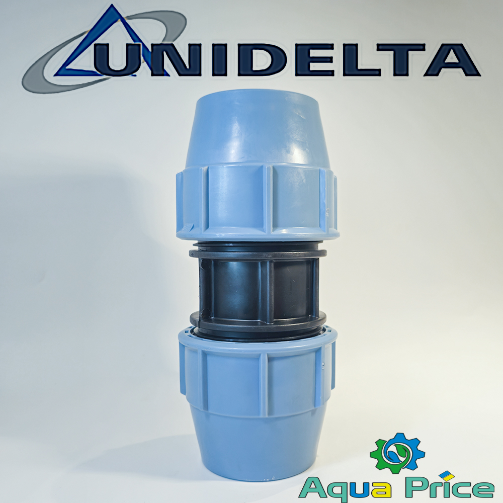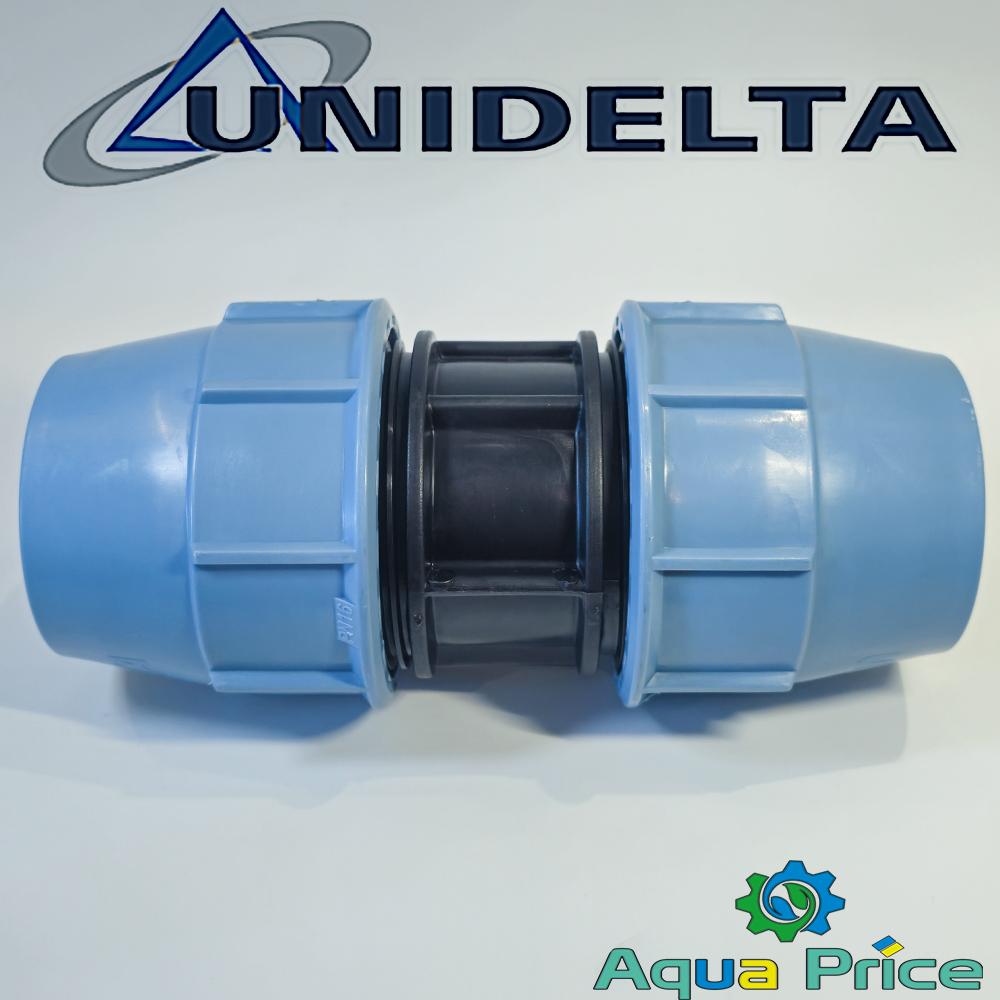 Простота монтажу: для встановлення з'єднувальної муфти Unidelta не потрібне спеціалізоване обладнання. Має компресійні гайки, які дозволяють з'єднати ПНД труби ключом для фітингів, без застосування зварювання. Установка проста, займає мінімум часу і виконується за відсутності досвіду в монтажі трубопроводів.