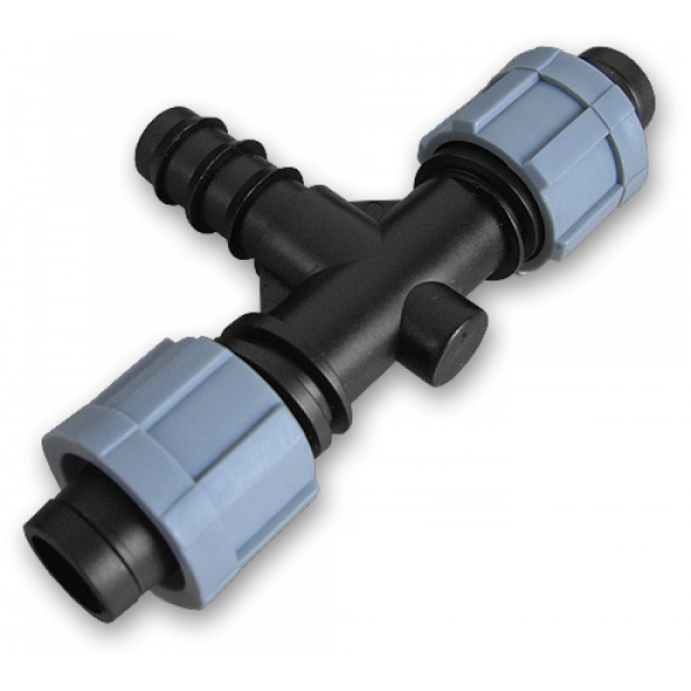 Трійник із двома підключеннями стрічки та з'єднувачем для трубки 20мм.