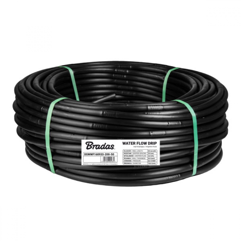 Трубка крапельна Ø 16 мм, товщина стінки 0,9мм, відстань між крапельницями 33см, продуктивність 2 л/год, 100м, DSWWF160933-200-100