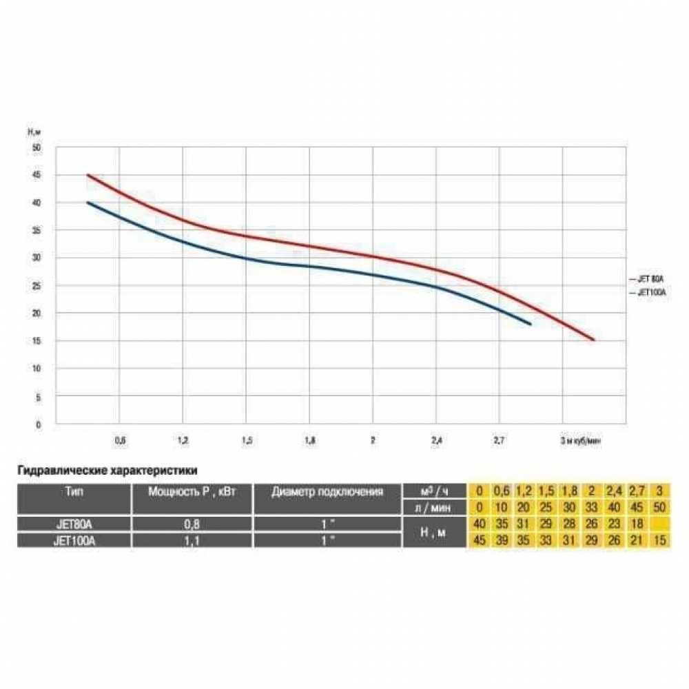 JET100A-PL-24 1,1 кВт чавун короткий це насос відцентрового типу з одним робочим колесом. Тиск у відцентрових насосах створюється завдяки відцентровій силі, що виникає при дії лопаток робочого колеса на рідину. Глибина підняття води до 9м досягається завдяки ежектору (трубці Вентурі) встановленому в корпусі насоса. Рідина, що всмоктується, лише частково подається в нагнітальний патрубок. Частина води, що залишилася, рециркулює через ежектор, який будучи з'єднаний з камерою всмоктування, створює в ній розрідження, необхідне для підняття води. Перед запуском необхідно залити воду в насосну частину. Завдяки системі Вентурі вирішується проблема перекачування рідин із вмістом повітря.