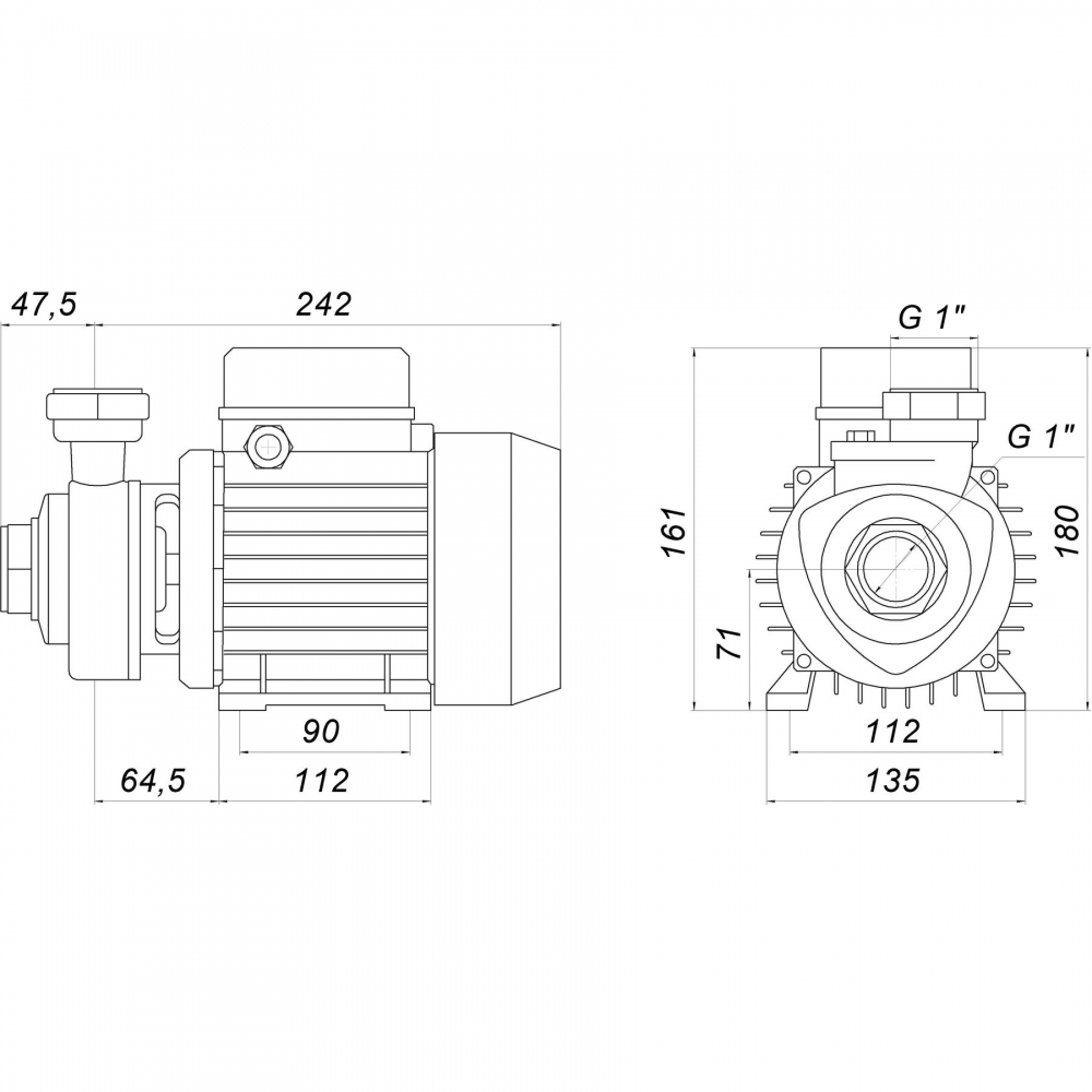 Електродвигун закритого типу із зовнішньою вентиляцією. В однофазних двигунах з робочим конденсатором передбачено вбудований термозашитний пристрій (за запитом)