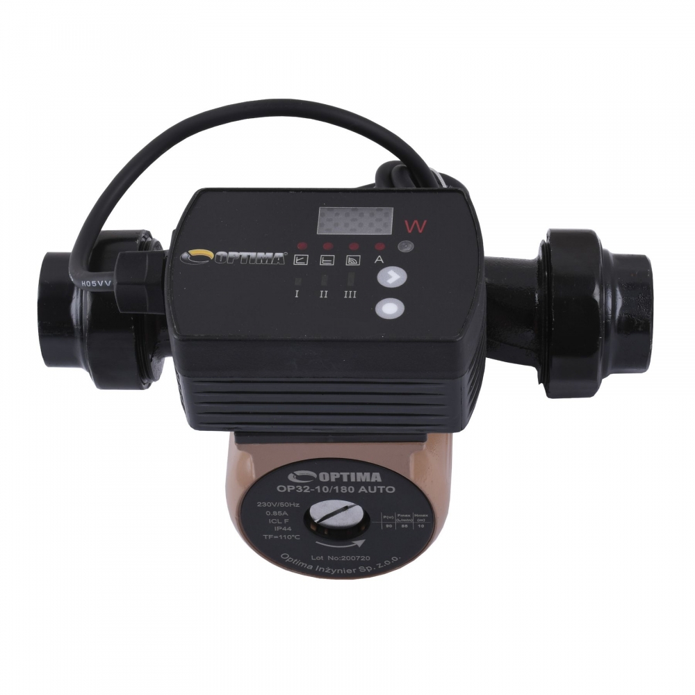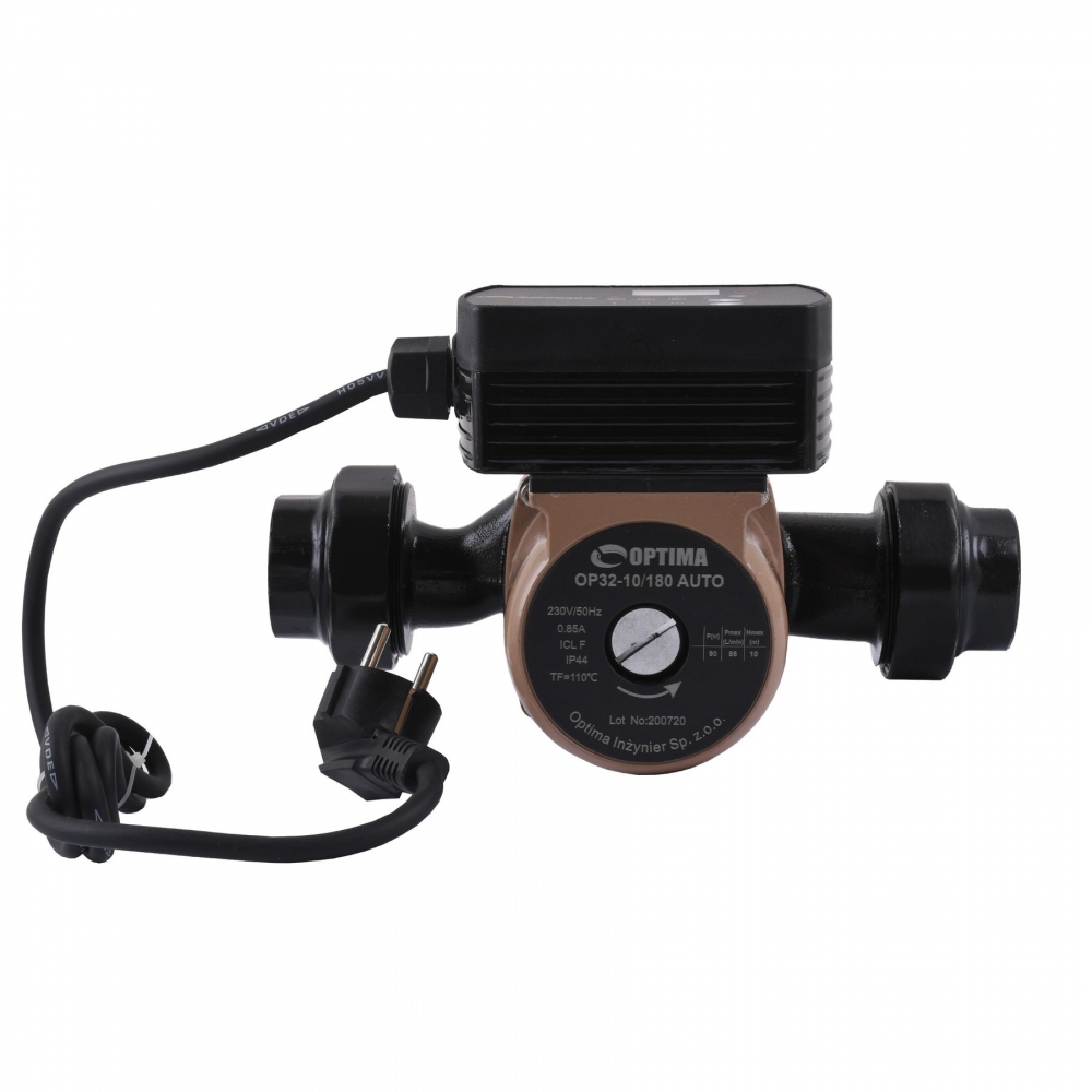 Optima OP32-10AUTO 180мм - призначений для циркуляції гарячої води в системах опалення, з постійною чи змінною витратою води, а також систем зі змінним показником температури в напірному трубопроводі. Можливе також використання у системах у нічному режимі експлуатації. Насос призначений для перекачування води та чистих, малов'язких, неагресивних та вибухонебезпечних рідин.