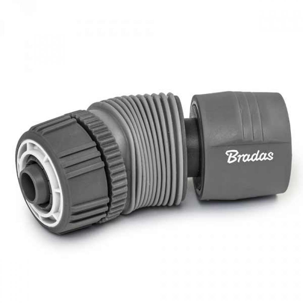 Високоякісний конектор (швидкороз'ємне з'єднання) для шланга 1/2". Рухлива центральна частина дозволяє регулювати кут нахилу. Має запірний клапан для відсічення води при відкритому крані.