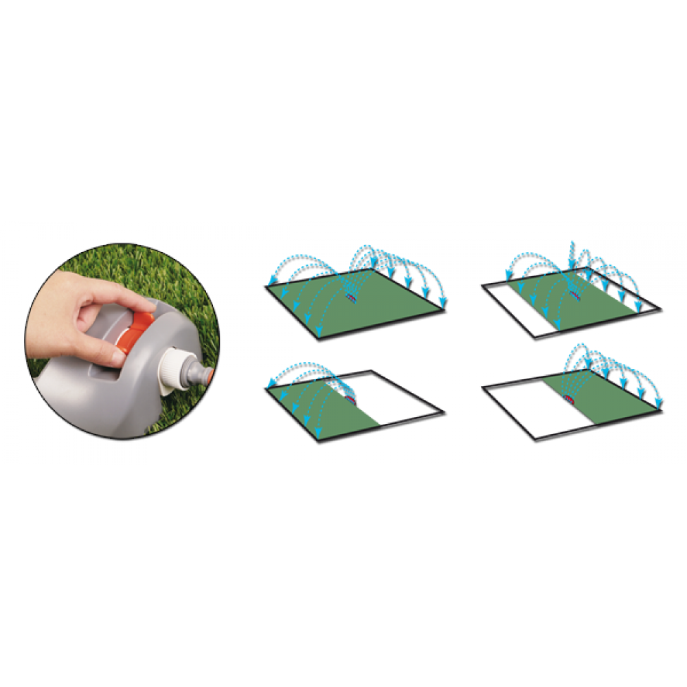 Осцилюючий дощовик WL-Z24 на пластиковій основі - оптимальний варіант для поливу ділянок прямокутної форми площею до 334 м2. 18 пластикових форсунок розміщених на алюмінієвій дузі створюють водяний віяло, що гойдається з боку на бік, що дозволяє поливати газон і низькорослі рослини делікатно і рівномірно. Кут коливання дуги, тобто відстань поливу, регулюється зручними повзунками.