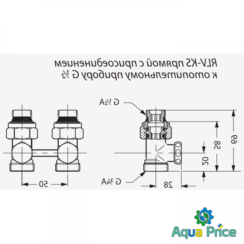 Вузол нижнього підключення "бінокль" прямий, вентильний для сталевих панельних радіаторів Danfoss RLV-KS