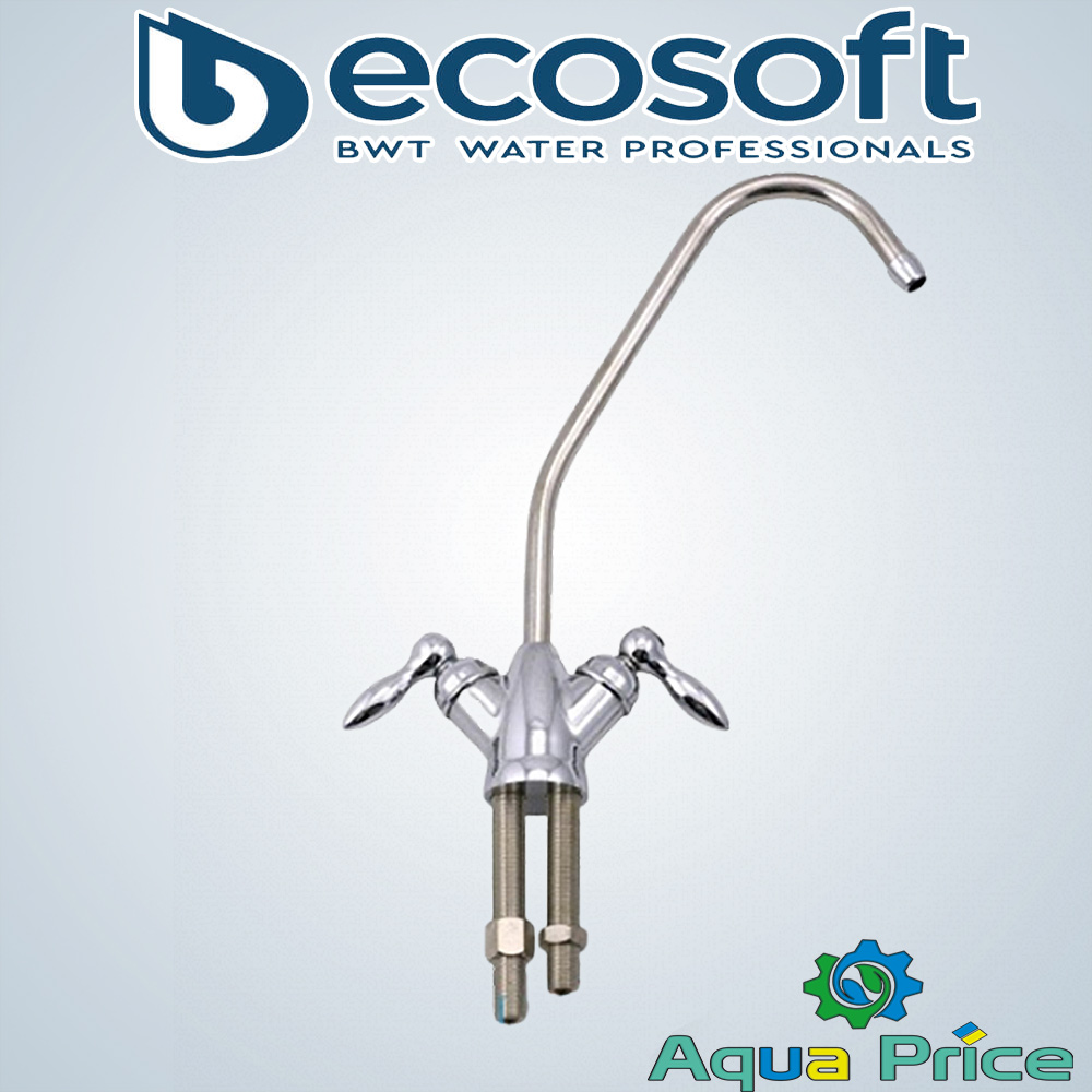 Подвійний кульовий кран (або змішувач) Ecosoft для системи фільтрів — це елемент, який використовується контролю потоку води в системах очищення води. Кран має два важелі або рукоятки, які дозволяють окремо керувати двома потоками води — одним, що проходить через фільтр, та іншим, минаючи його. Це дозволяє користувачеві вибирати між фільтрованою та непрофільтрованою водою, а також повністю відключати подачу води за необхідності обслуговування або заміни фільтрів.