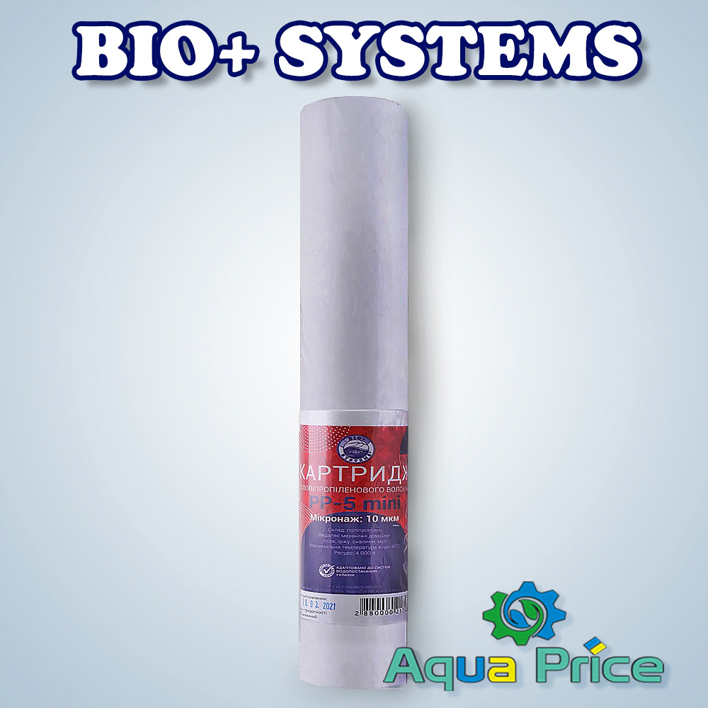 Данный продукт разработан и выпущен под брендом Bio+ Systems и входит в линейку «Мини». Обозначенная плотность 10 мкм определяет способность картриджа удерживать мельчайшие частицы и таким образом делать воду чище. Из неё успешно выводятся в том числе: