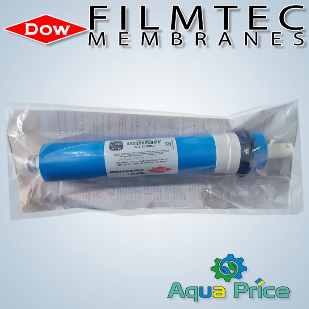 Filmtec TW30-1812-50HR — это мембрана (картридж) для систем обратного осмоса, производится компанией DuPont под брендом Filmtec. Номер модели "50G" указывает, что картридж способен производить до 50 галлонов (189 литров) очищенной воды в сутки при нормативных показателях (температура, давление и загрязнение).