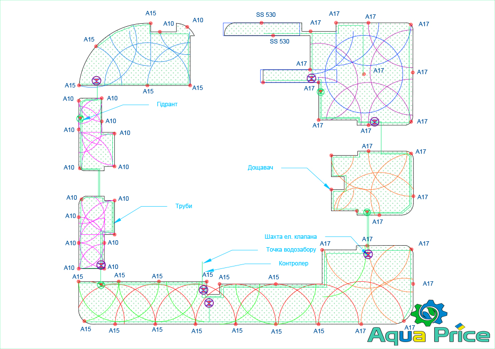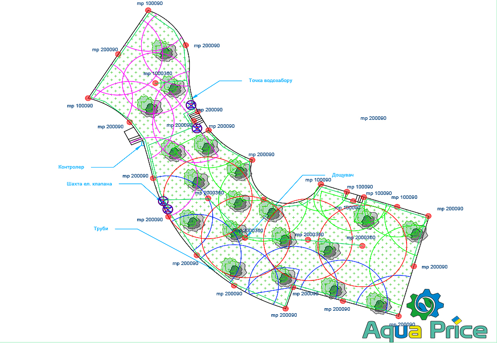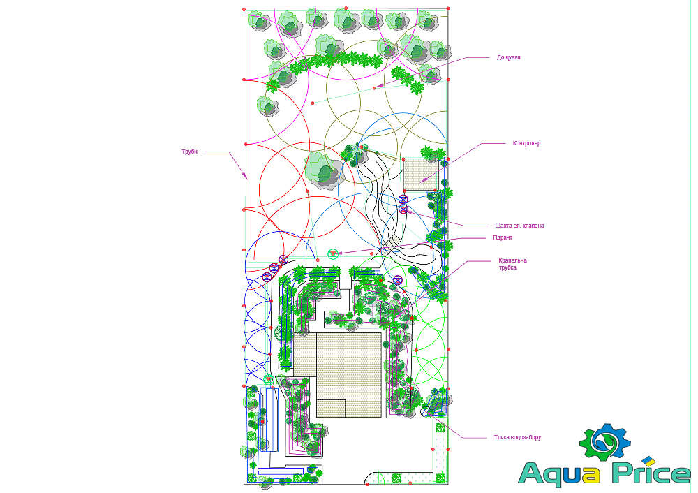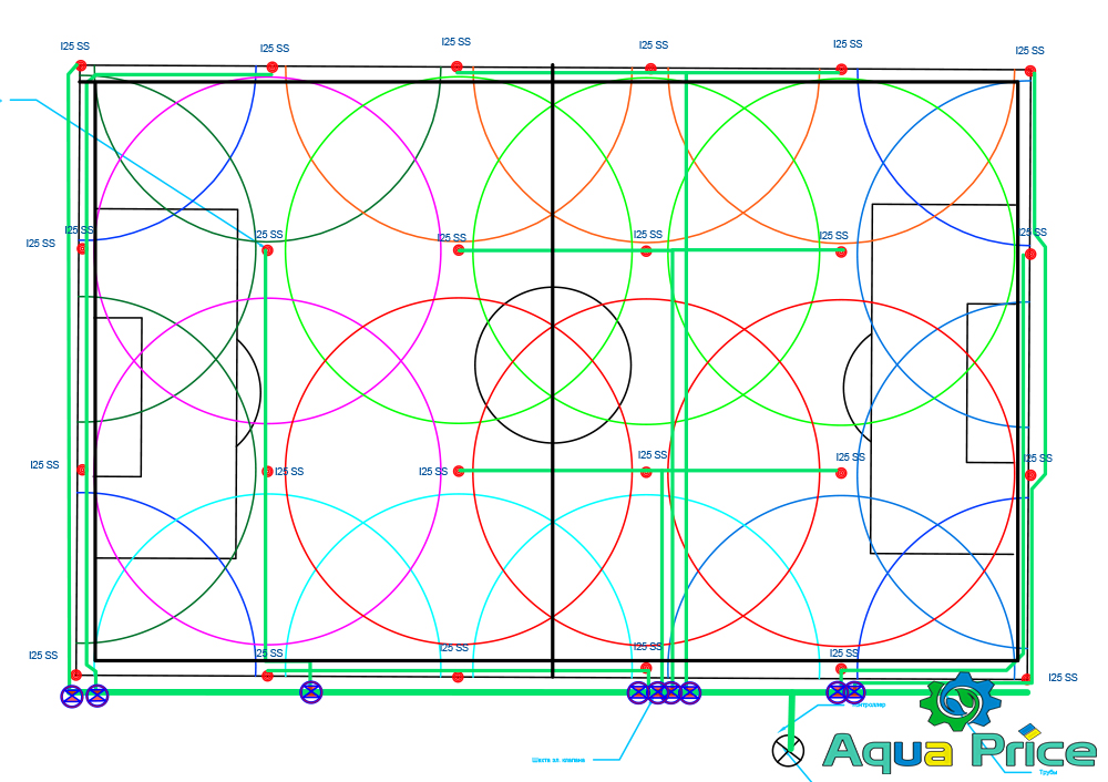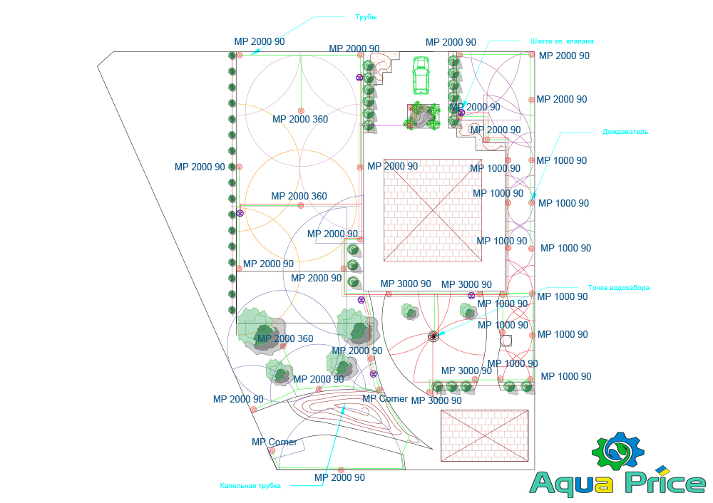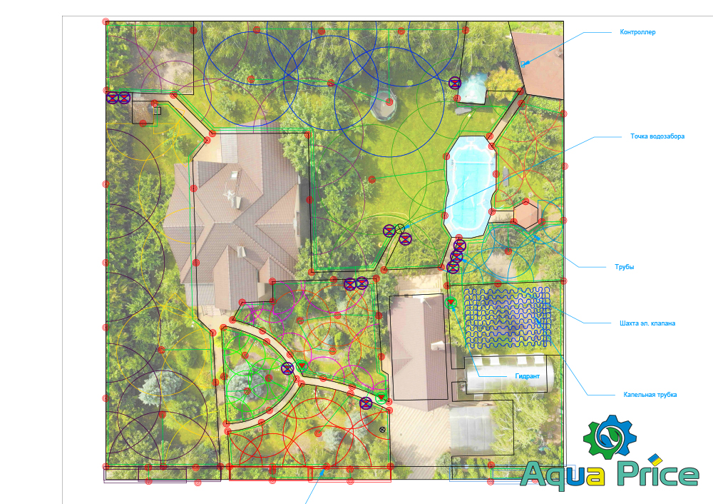 - Оптимальное расположение трубопровода, дождевателей и капельных линий.